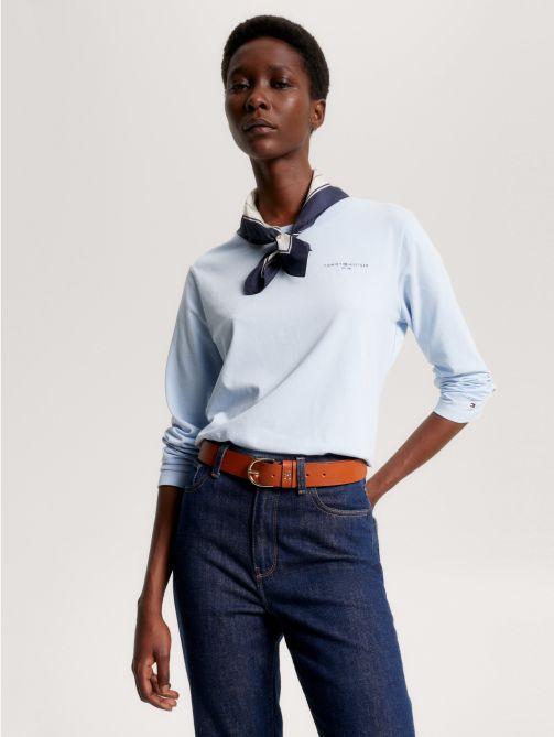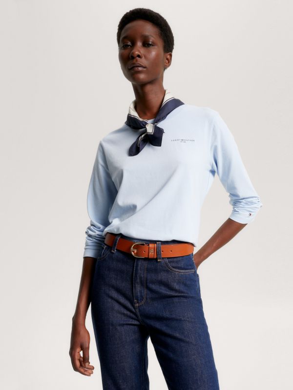 احصلي على تيشيرت بأكمام طويلة ومصنوع من القطن العضوي المرن ومزين بتفاصيل العلامة التجارية.