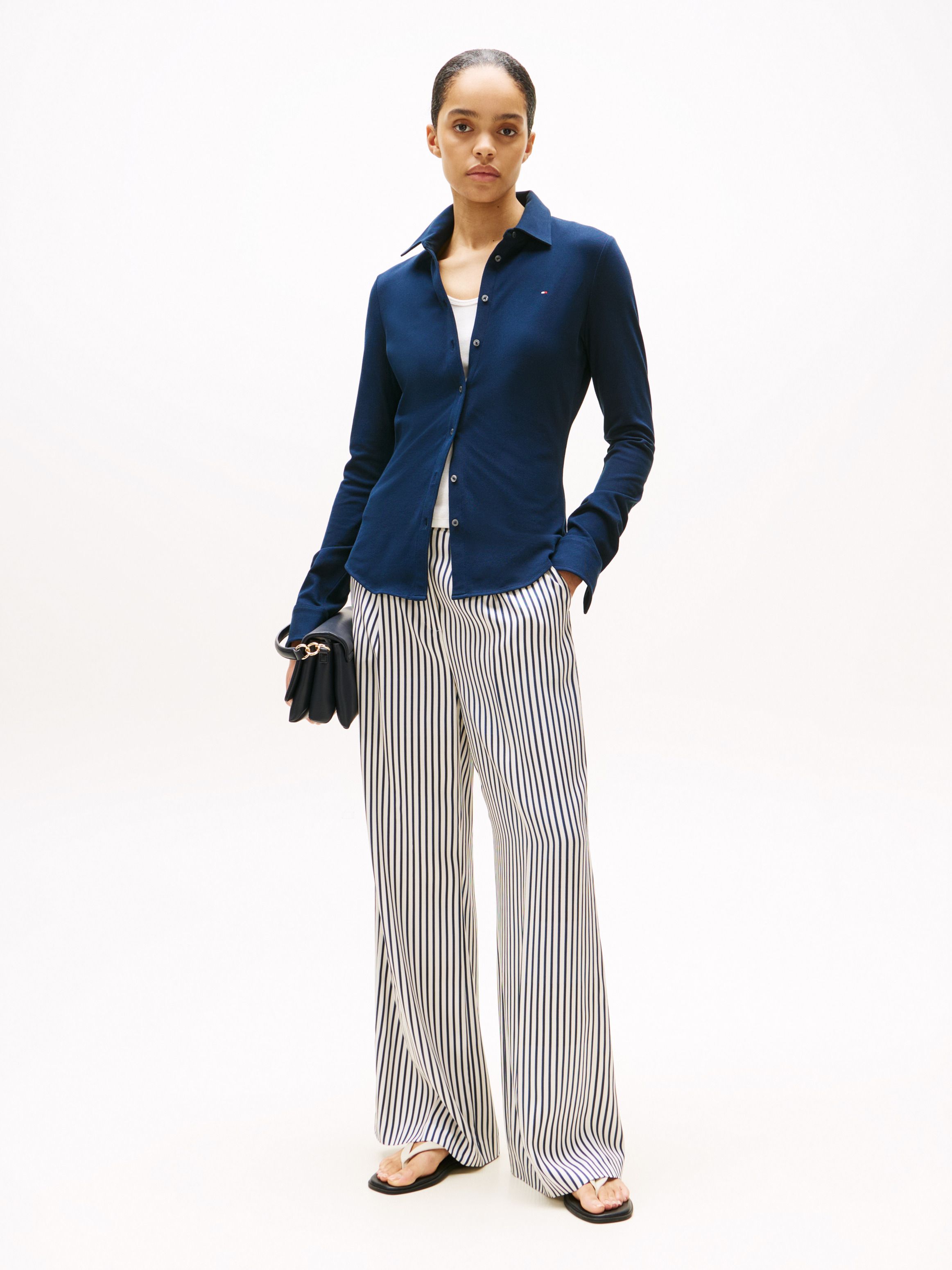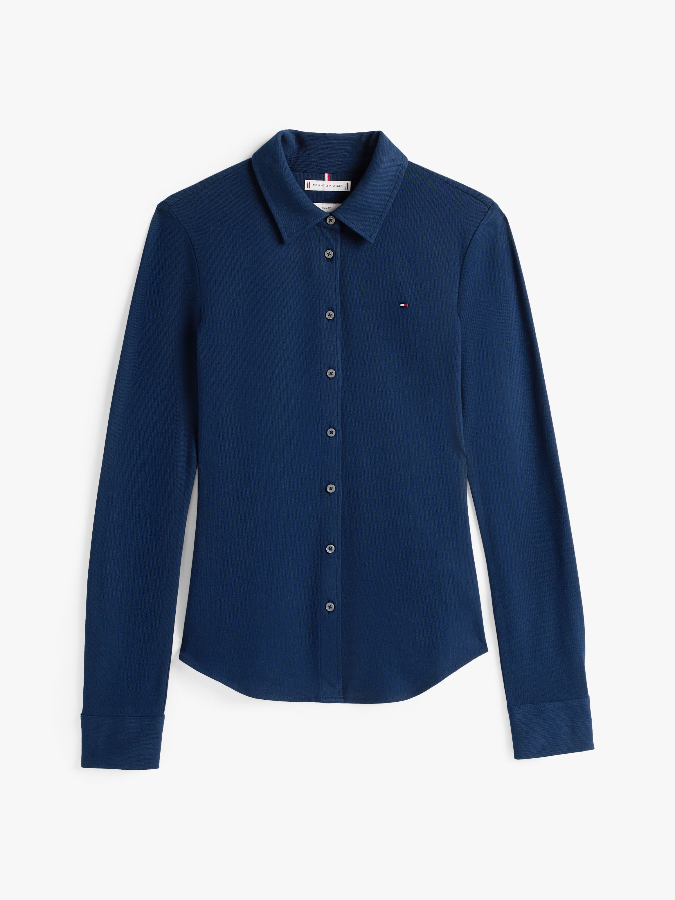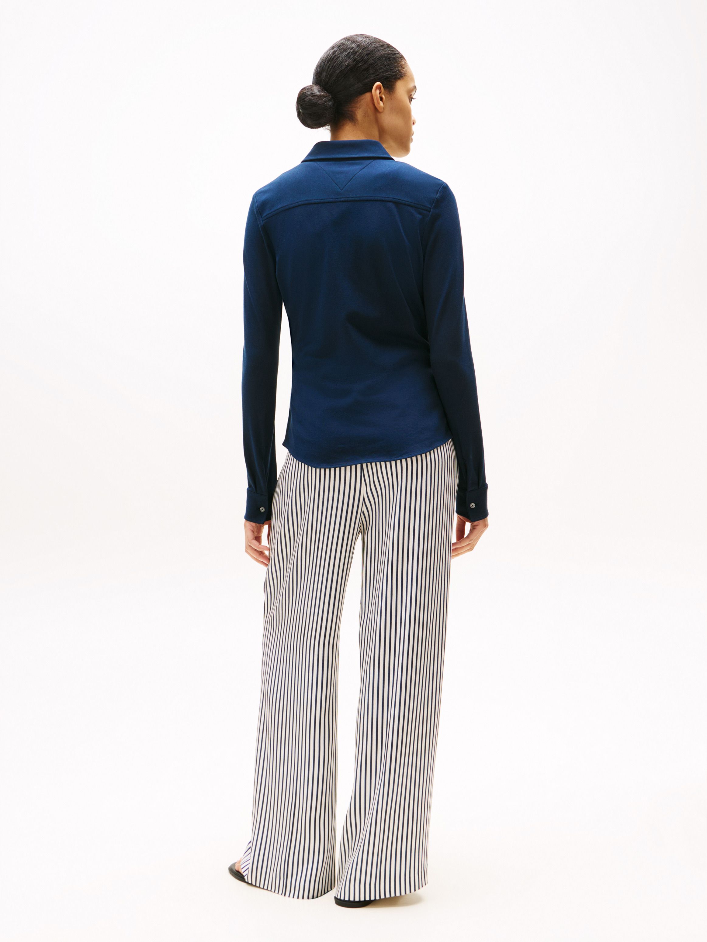 مستوحى من عام انطلاق علامة Tommy Hilfiger، تأتي مجموعة 1985 لتعيد ابتكار الأيقونات الكلاسيكية بأسلوب عصري. يتميز هذا القميص الضيق بقماش بيكيه مطاطي يمنحك راحة وأناقة تدوم طوال اليوم.