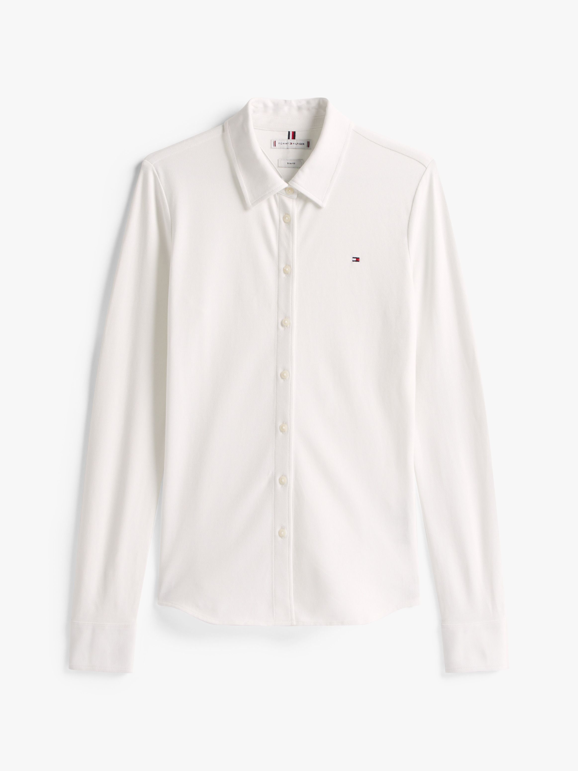 مستوحى من عام انطلاق علامة Tommy Hilfiger، تأتي مجموعة 1985 لتعيد ابتكار الأيقونات الكلاسيكية بأسلوب عصري. يتميز هذا القميص الضيق بقماش بيكيه مطاطي يمنحك راحة وأناقة تدوم طوال اليوم.