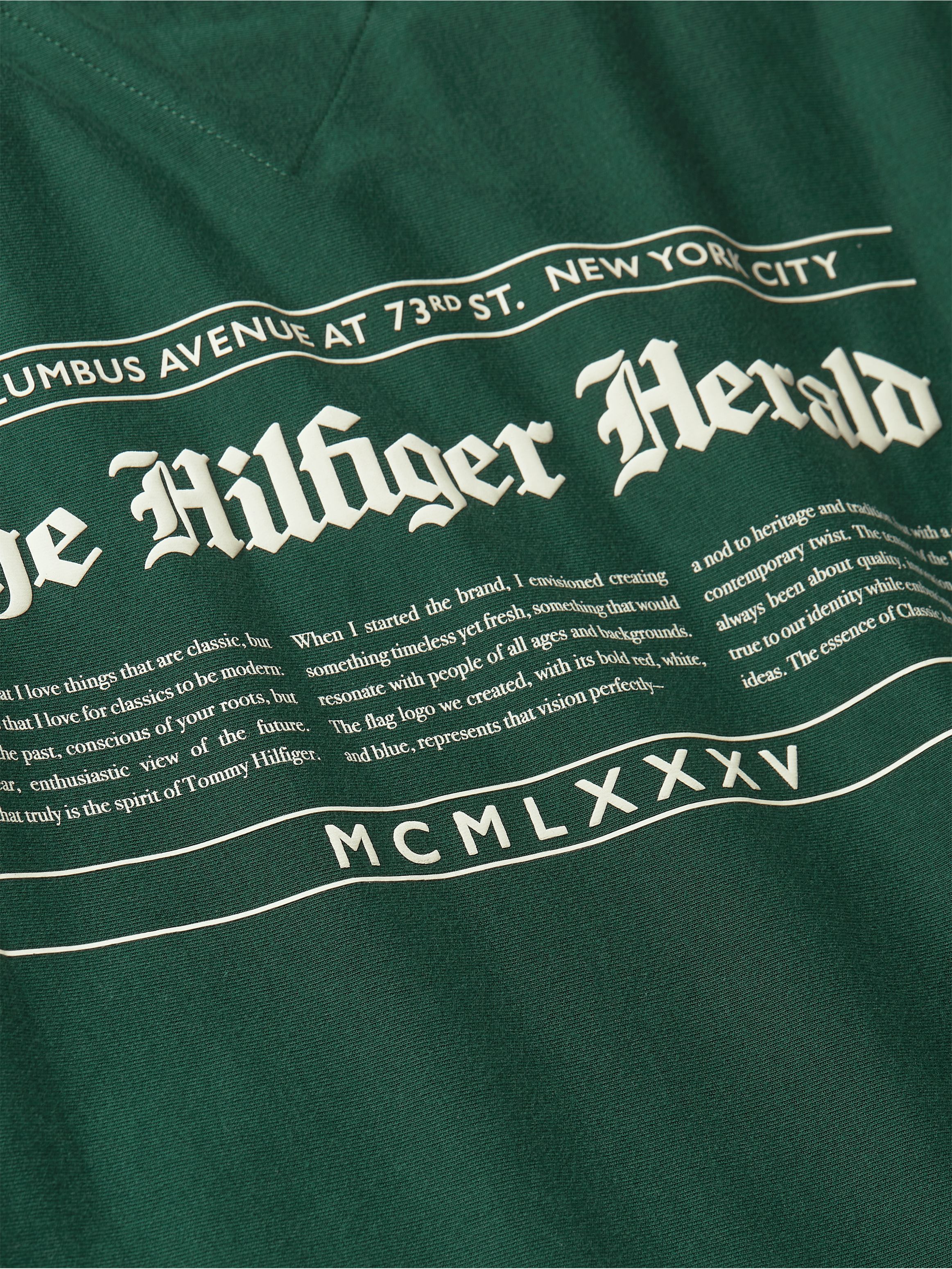 هذا التيشيرت من قماش جيرسي قطني ثقيل، يتميز بطباعة شعار مستوحاة من الصحف على الظهر لإضفاء لمسة عصرية على إطلالاتك اليومية.