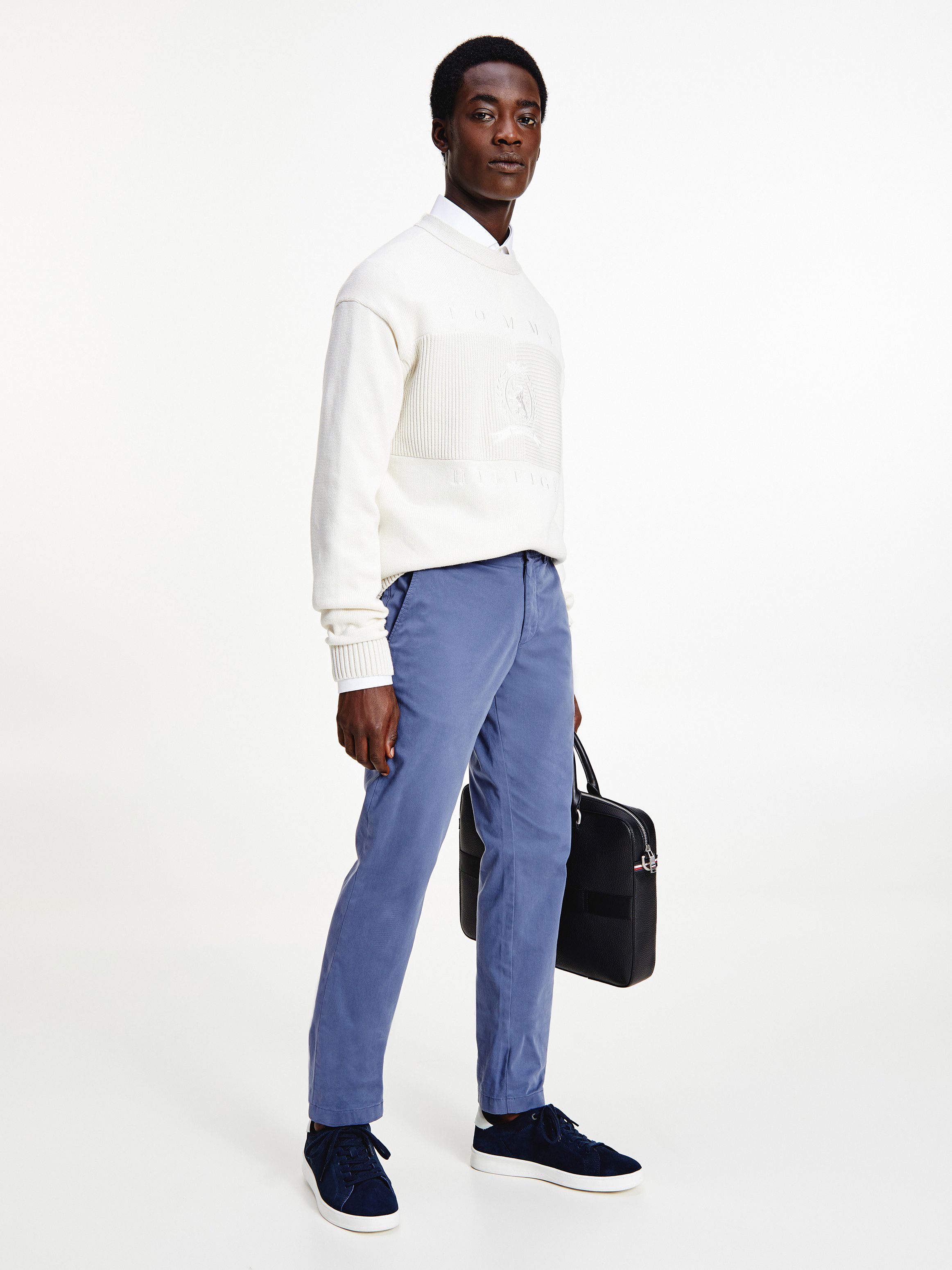 يتميز البنطلون بأنه مصنوع من نسيج مصبوغ من القطن الساتان بالإضافة إلى تنقية تومي هيلفيغر فليكس التي توفر المزيد من المرونة.