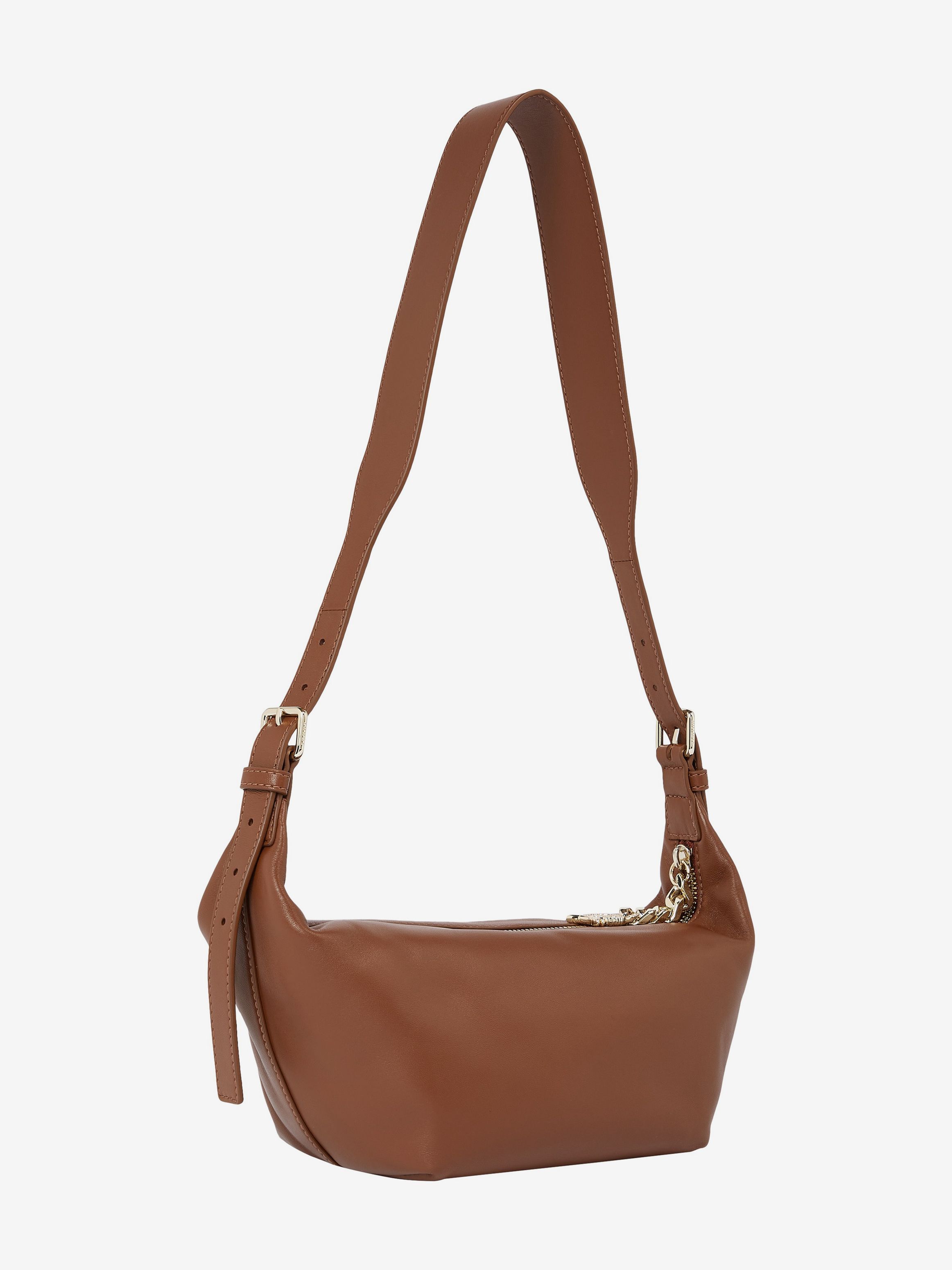 تعتبر الحقيبة الكتف عنصر أساسي في خزانتك فهي مصنوعة من الجلد الناعم وتتميز بتفاصيل سلسلة سميكة لامعة.