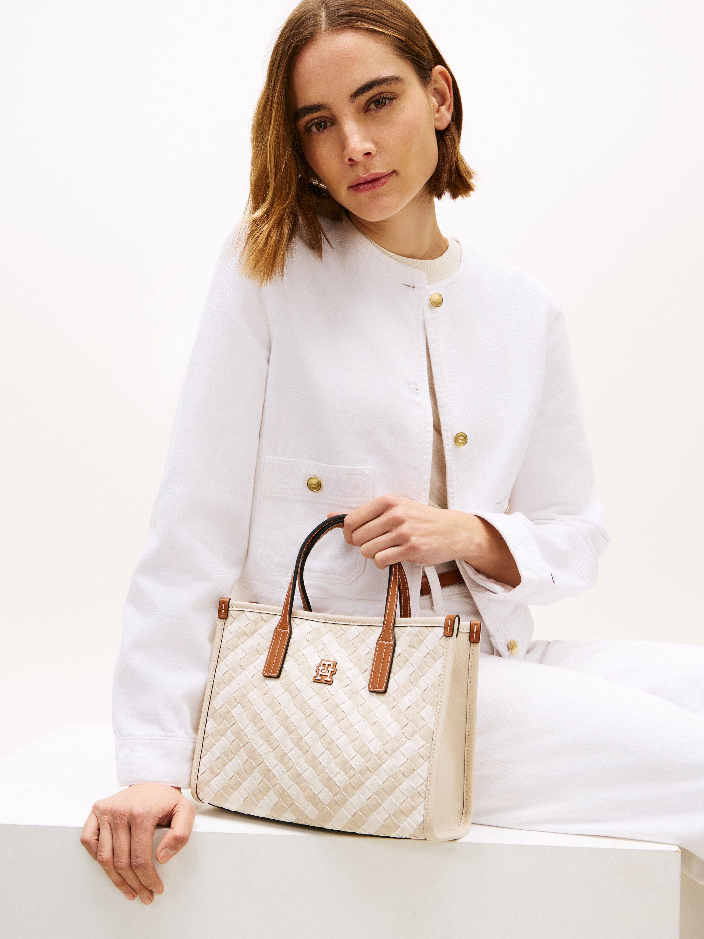 هذه الحقيبة التوت الجاهزة للمدينة تتميز بتصميم منسوج فريد يمزج بين التشطيبات المحببة والناعمة لتأثير ملمسي فاخر.