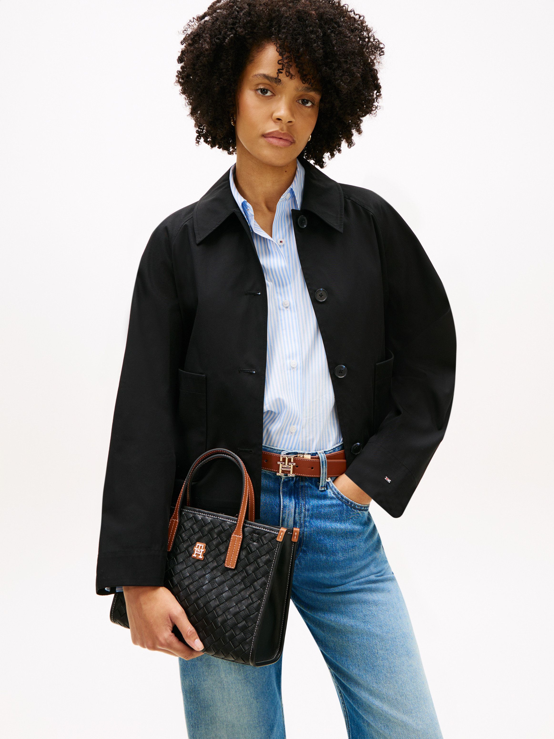 هذه الحقيبة التوت الجاهزة للمدينة تتميز بتصميم منسوج فريد يمزج بين التشطيبات المحببة والناعمة لتأثير ملمسي فاخر.