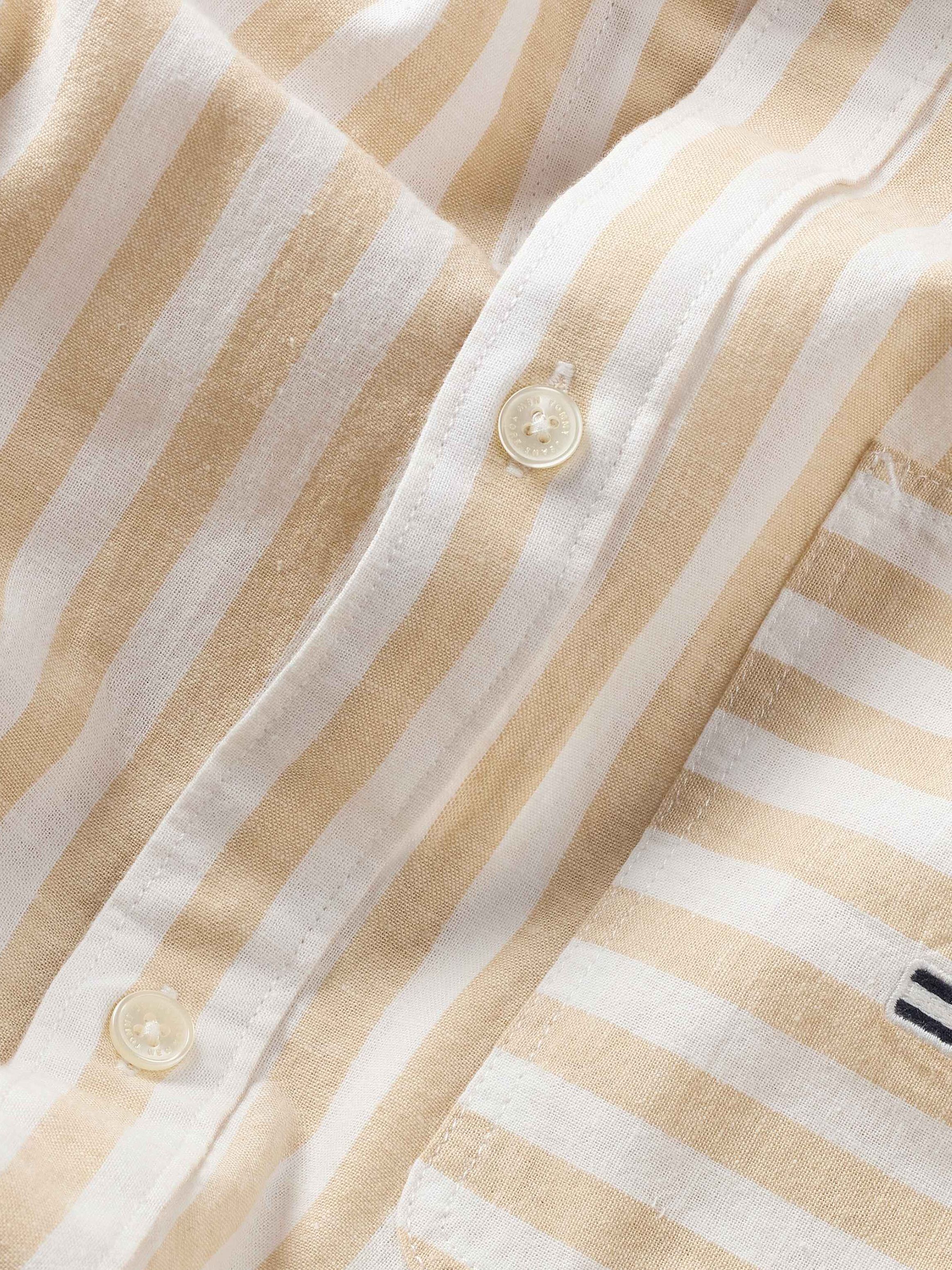 هذا القميص مصنوع من القطن العضوي لملاءمة عادية ويتميز بتصميم كلاسيكي مخطط بالكامل وتفاصيل الشعار.
