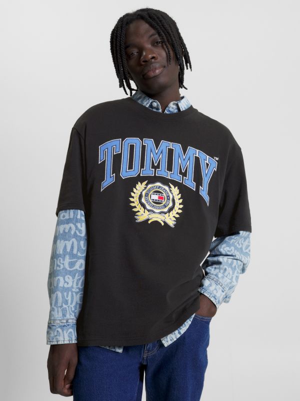 يلتقي التصميم الجامعي مع التصميم المستوحى من أجواء التزلج في هذا التيشيرت، ويتميز بقصة واسعة وتفاصيل العلامة التجارية.