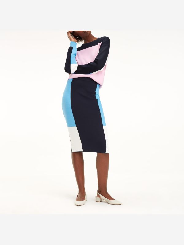 تنورة جريئة وعصرية مصممة بألوان مغايرة على الجانبين لتضفي لمسة سحرية لإطلالة أنيقة لا مثيل لها.