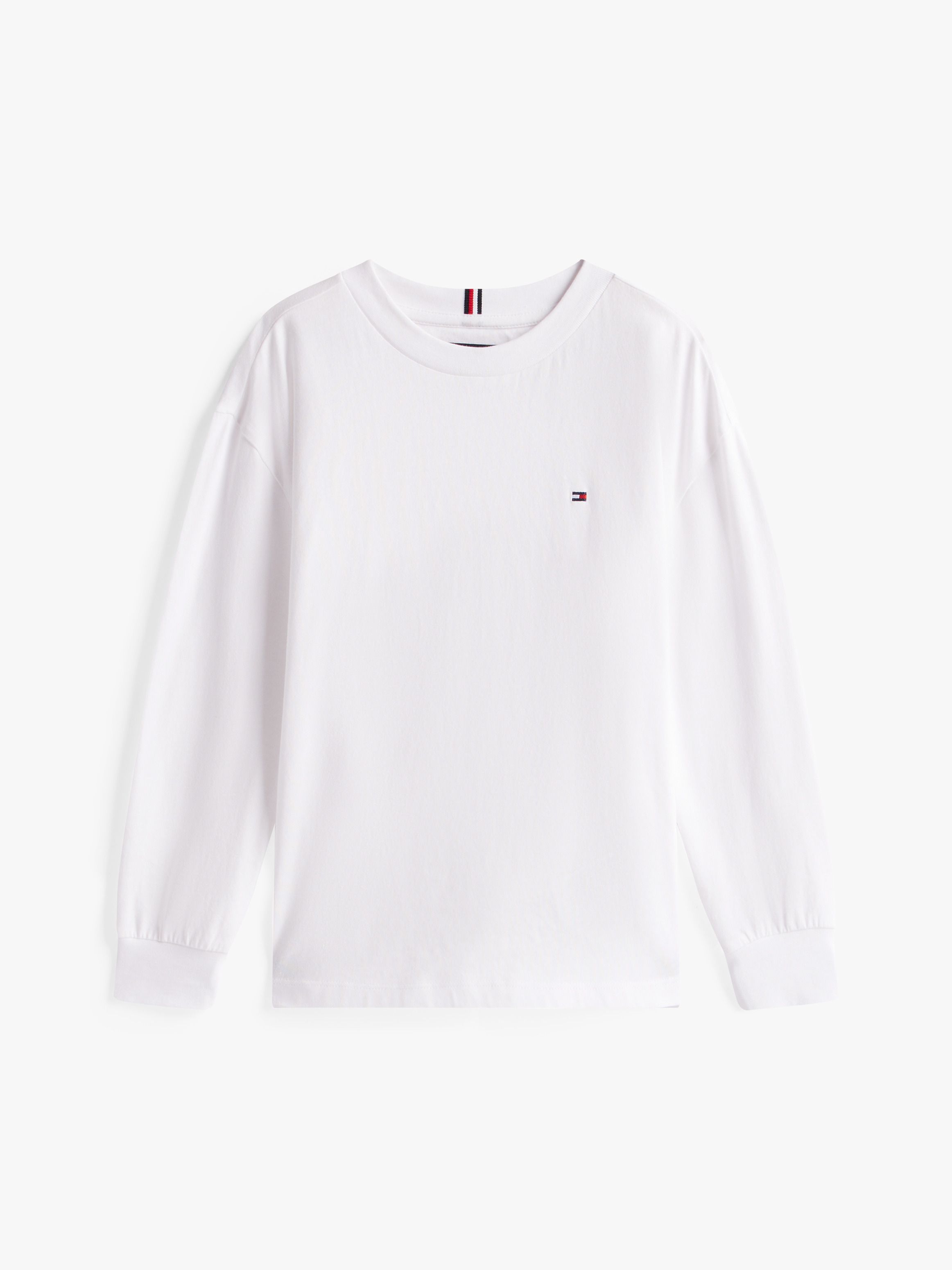 تمتع بإطلالة مريحة وعصرية مع تيشيرت الجيرسي بأكمام طويلة، يتميز بياقة دائرية تقليدية وأكتاف منخفضة تضيف لمسة كاجوال، مع تفاصيل تحمل توقيع Tommy Hilfiger تعزز من أناقته اليومية.