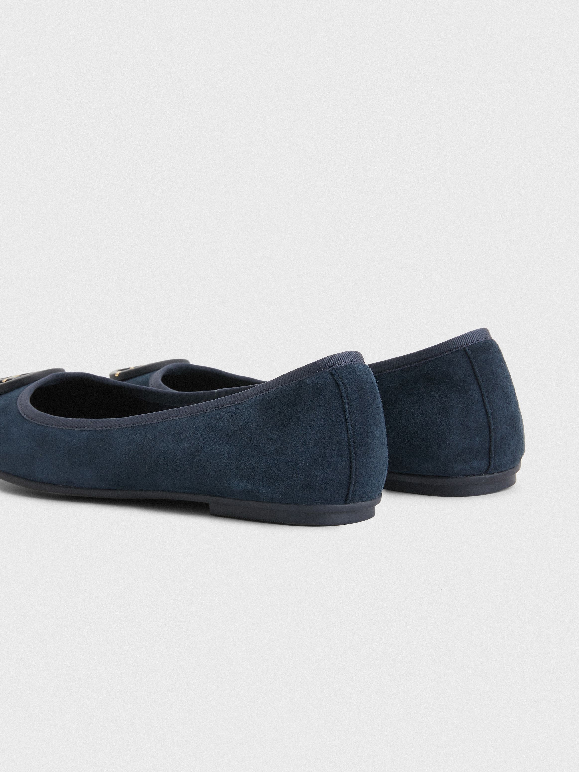 احصلي على حذاء باليرينا رائع سهل الارتداء ويلائم ملابس الصيف، كما أنه مصنوع من الشمواه الناعم مع بطانة قطنية.