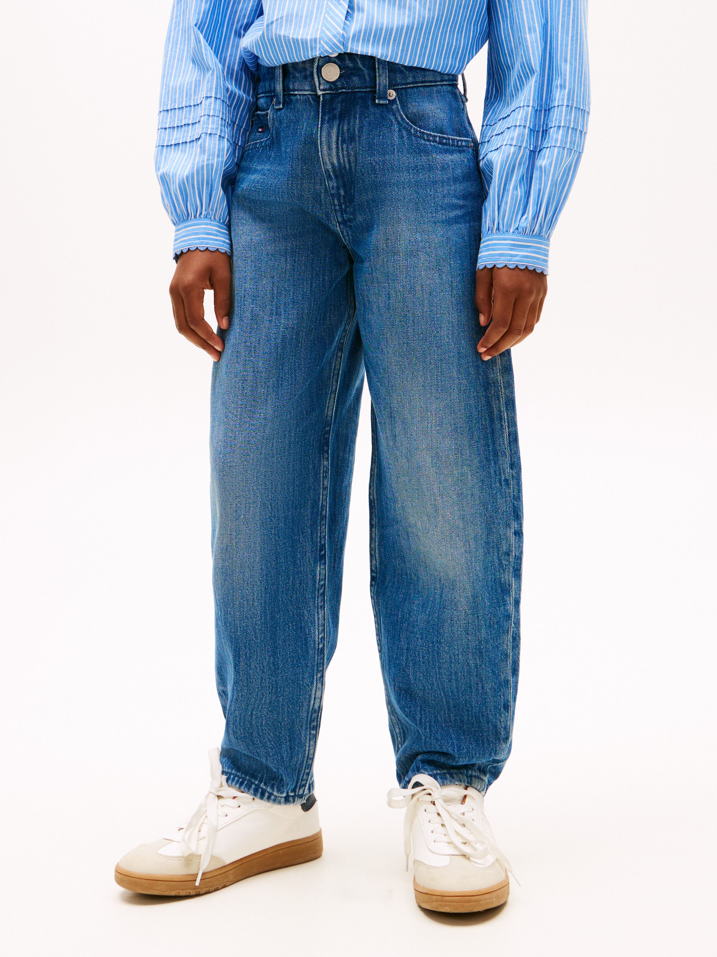 يأتي هذا البنطال الجينز المصنوع من دنيم قطني مطاطي بقصّة Barrel التي تمنحه شكلاً مميزًا، مع تأثيرات المَسح والخطوط الطبيعية التي تضفي مظهرًا مريحًا وعصريًا. أبرز التفاصيل • دنيم قطني مطاطي • تأثير ممسوح وخطوط تلاشي أمامية وخلفية • سحاب مع زر للإغلاق • تصميم الجيوب الخمسة • علامة تومي هيلفيغر المميّزة • تطريز علم تومي هيلفيغر على جيب الكوين والجيب الخلفي القصة والمقاس • ساق Barrel • ساق مدبّبة (Tapered) الخامة والعناية • ‎99% قطن، ‎1% إيلاستين • وزن الدنيم: ‎11 أوقية