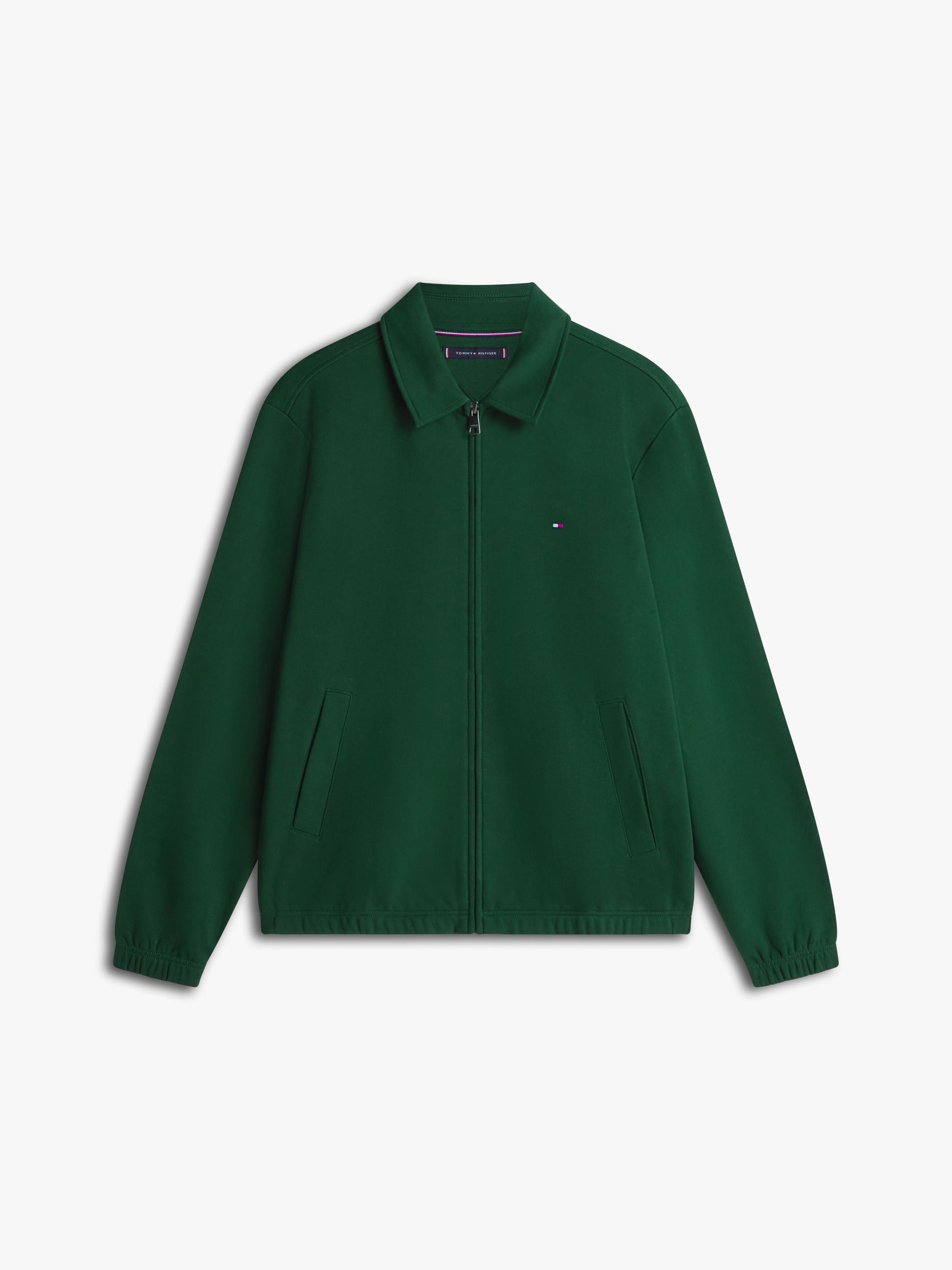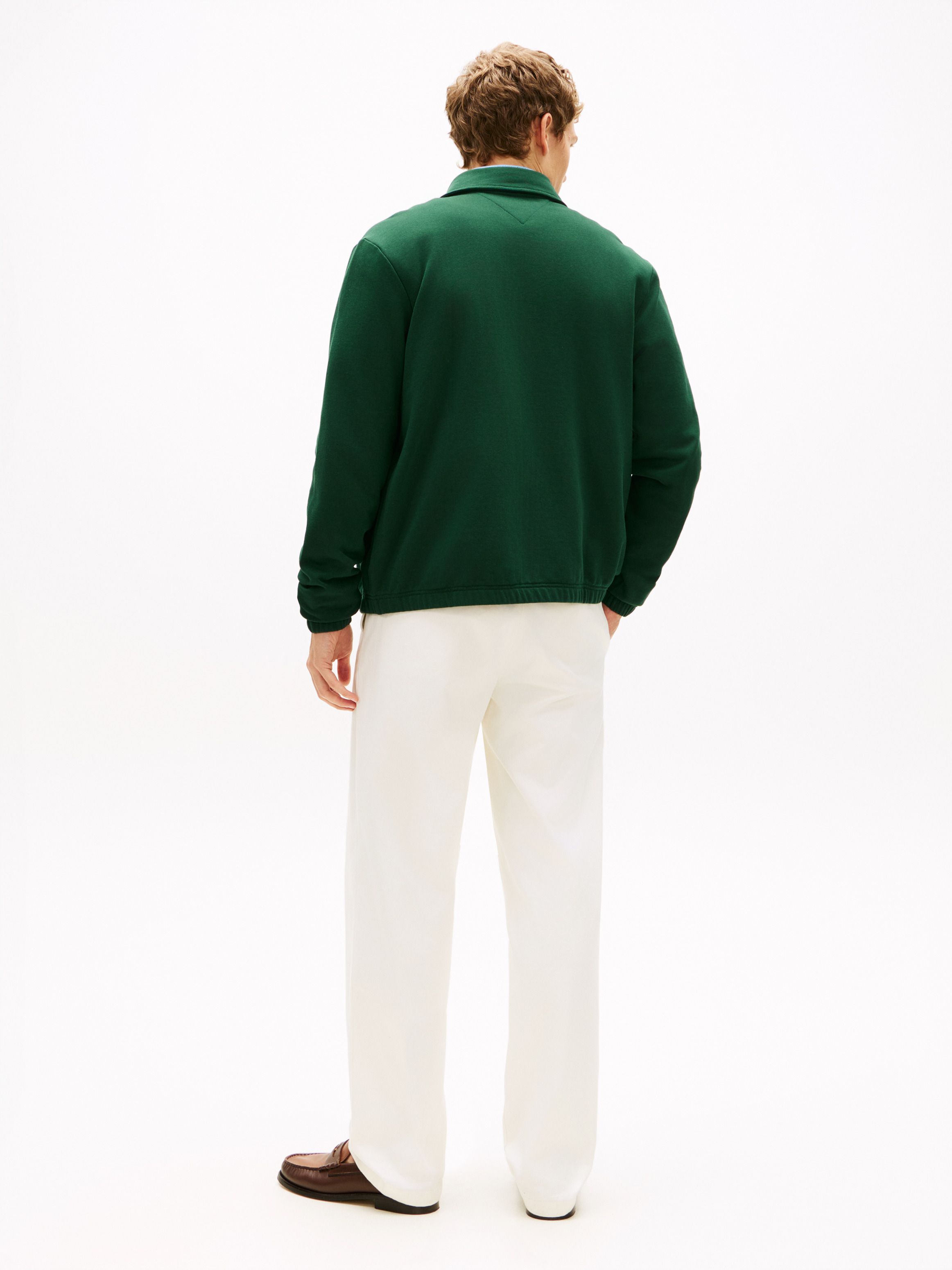 جاكيت تيري مستوحى من أسلوب Ivy بتصميم بريبي مريح، مع سحاب كامل وتطريز علم الشعار على الصدر كلمسة كلاسيكية.