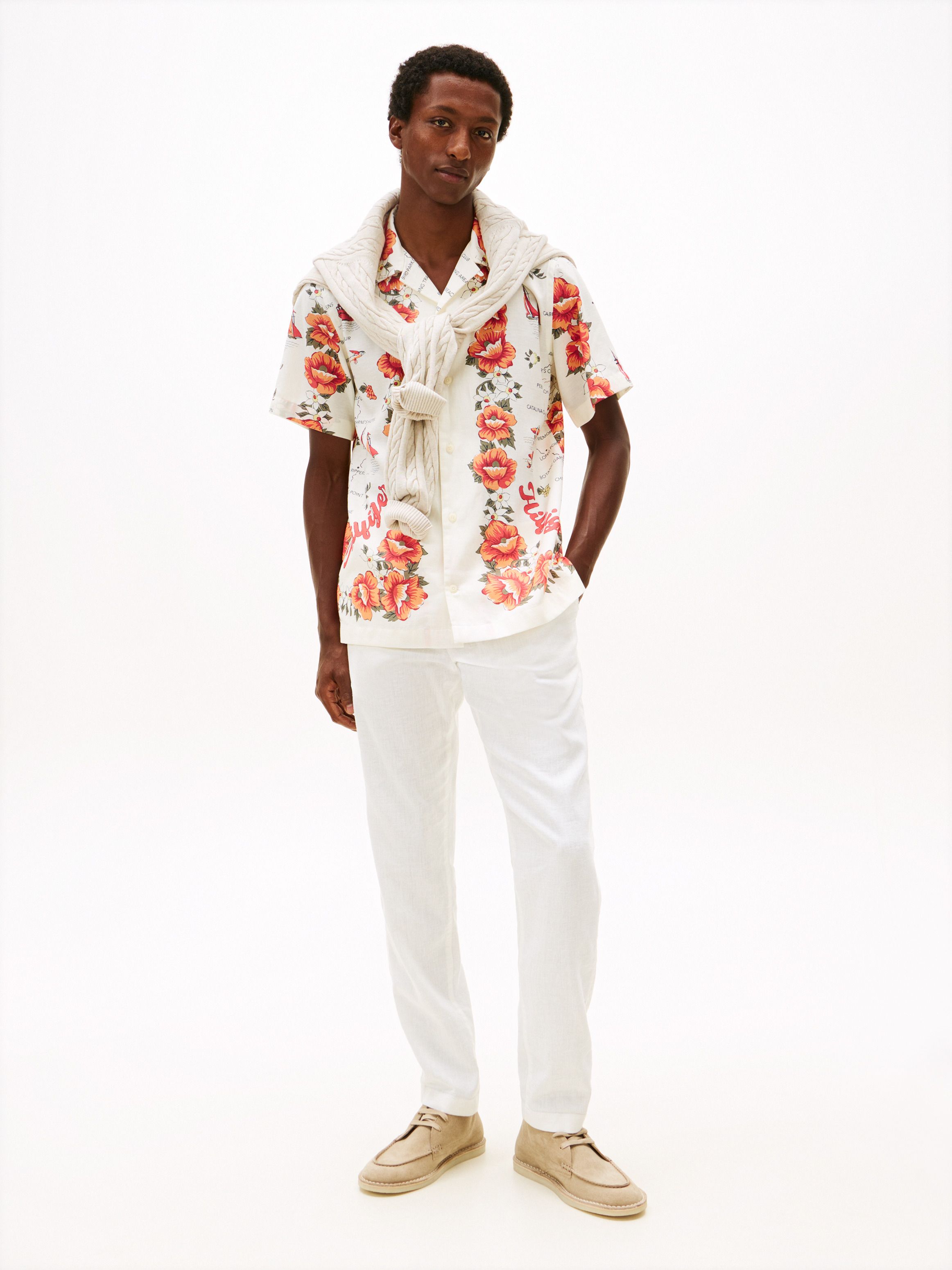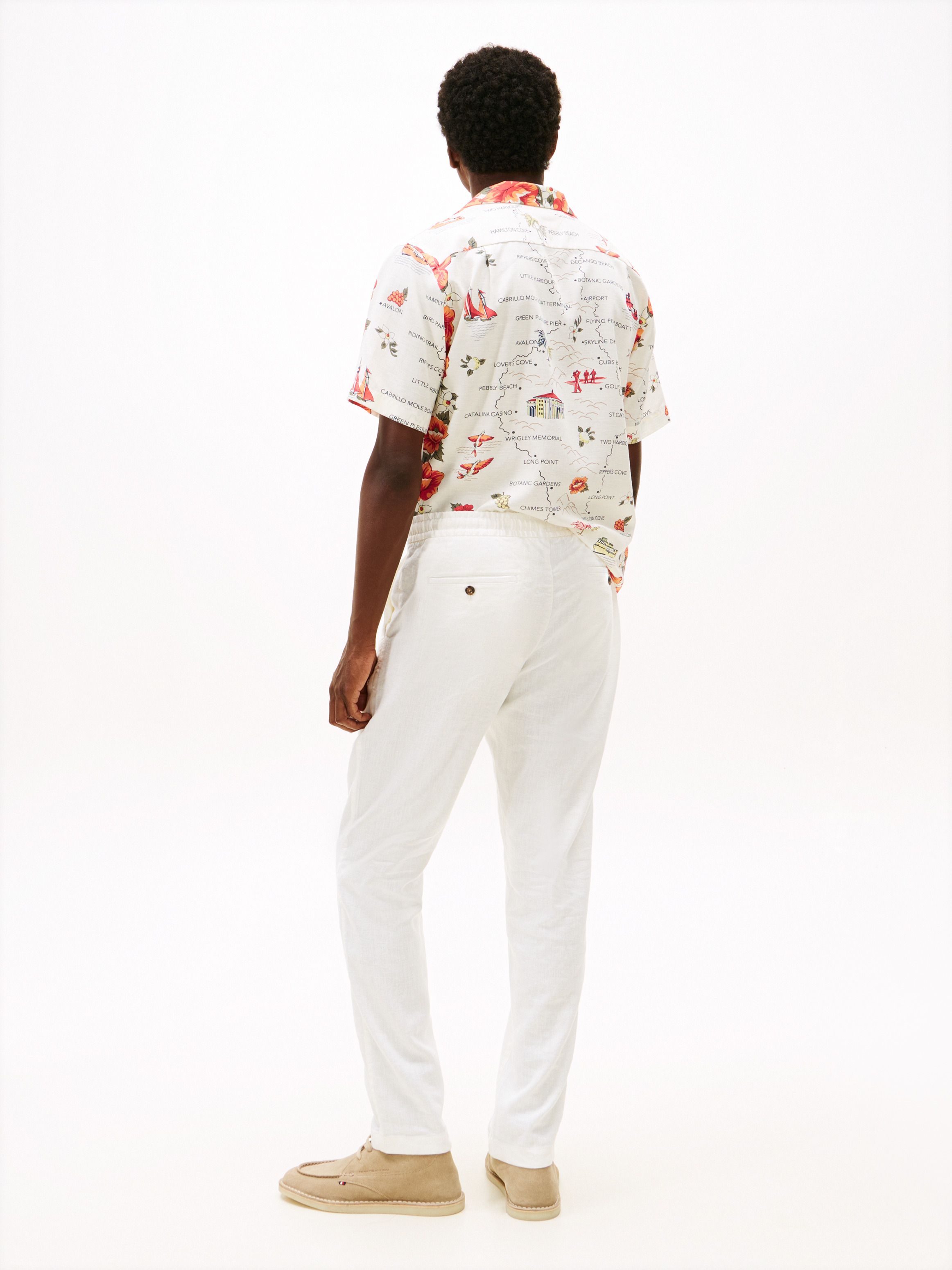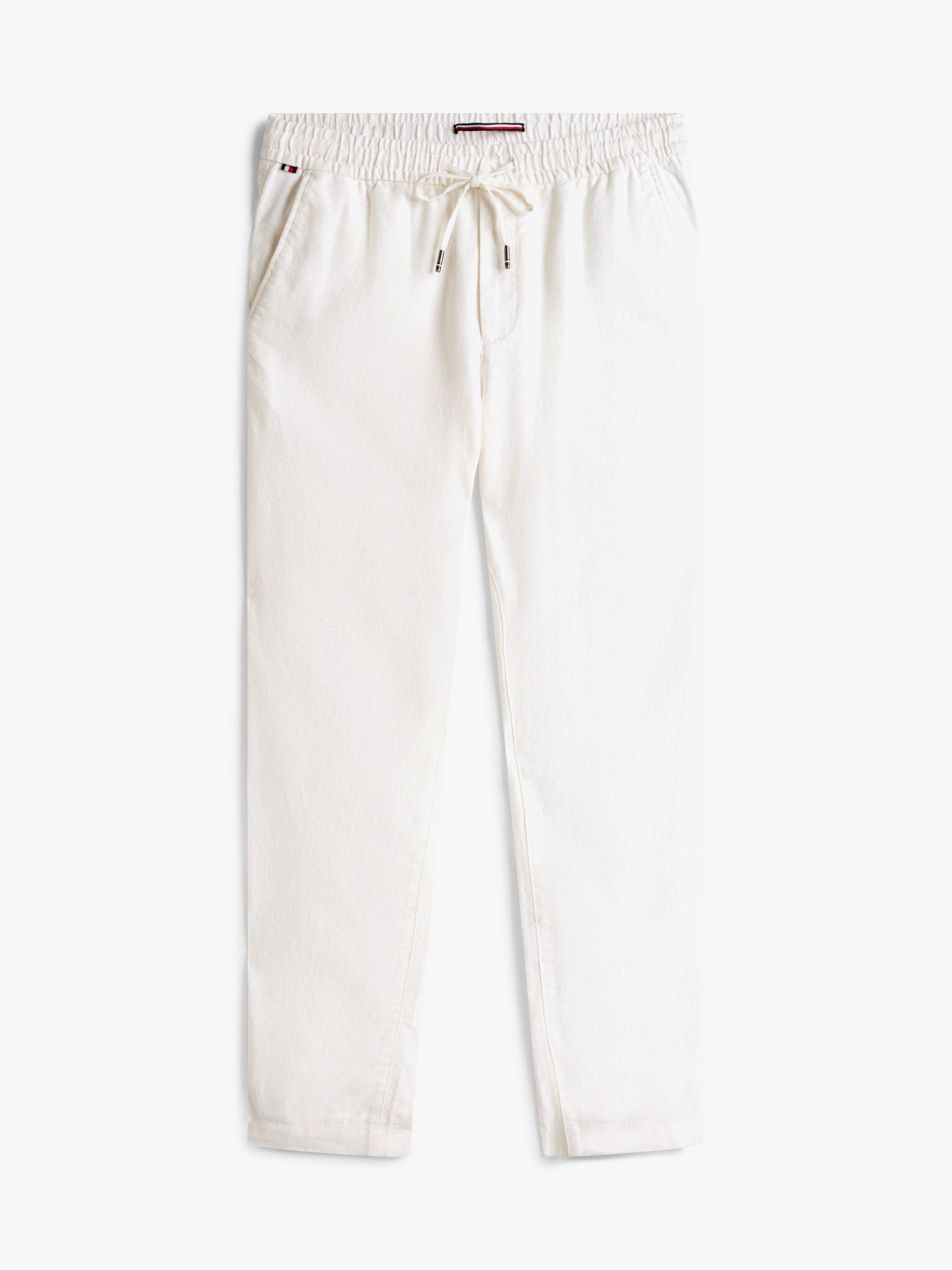 يأتي هذا البنطلون بخامة خفيفة من مزيج الكتّان تمنحك راحة طوال اليوم، مع خصر مطاطي مزوّد برباط يعزز الإطلالة المريحة. أبرز التفاصيل • مزيج كتّان • خصر مطاطي برباط • علامة Tommy Hilfiger القصة والمقاس • قصّة مريحة • ساق مضيقة • طول العارض 1.86م ويرتدي مقاس ‎32/34‎ الخامة والعناية • ‏71% كتان، 29% بوليستر