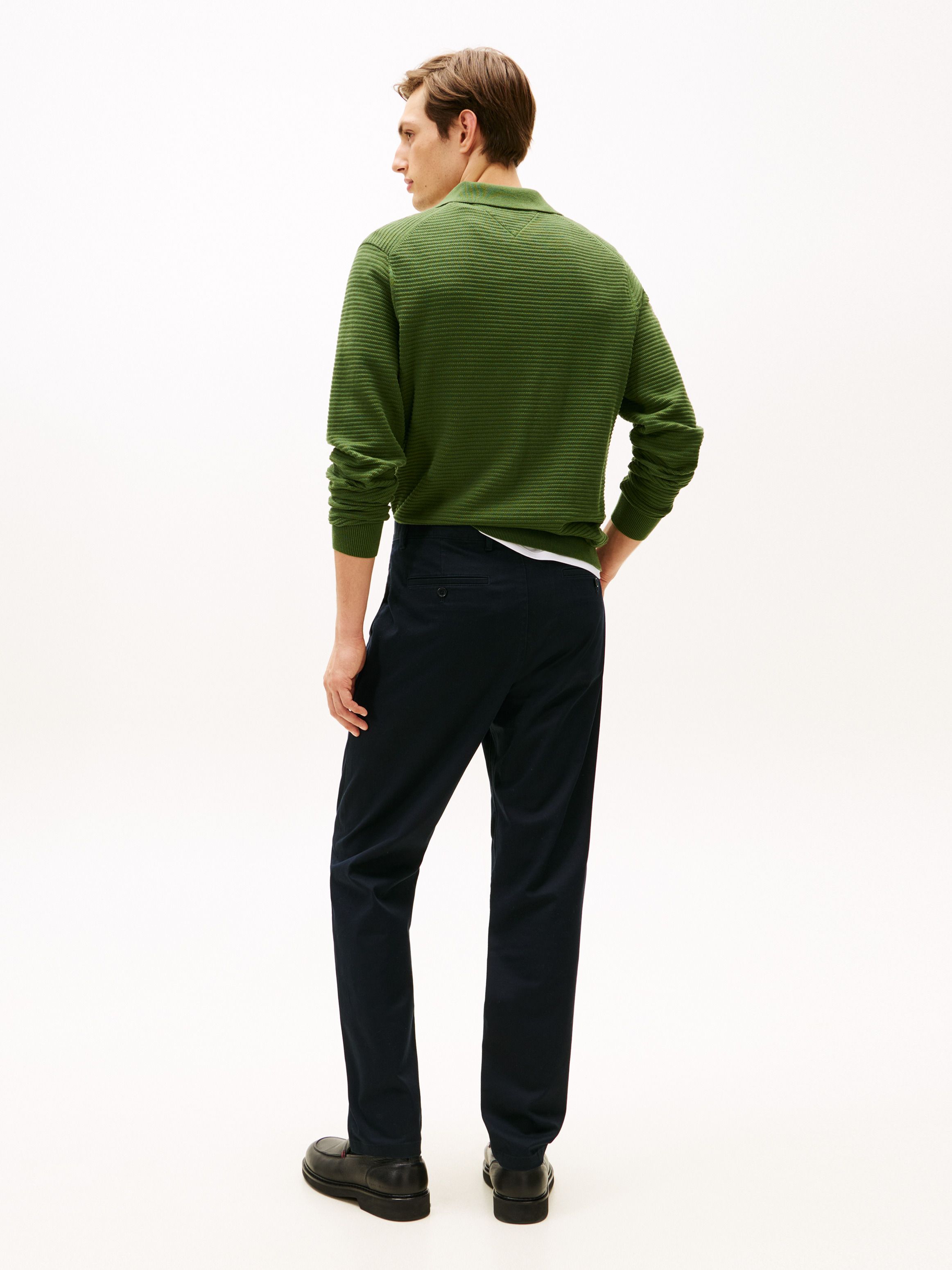 تم تصميم هذا البنطلون من تويل القطن المرن ليمنحك راحة وحركة أسهل، مع قصّة ساق مضيقة تمنحك إطلالة أنيقة وواضحة. أبرز التفاصيل • تويل قطن مرن • سحّاب مع إغلاق بزر • جيبان جانبيان بزاوية • جيبان خلفيان بفتحة مقلّمة وأزرار • شريط التوقيع على الخصر • علامة Tommy Hilfiger • تطريز علم Tommy Hilfiger على الخلف القصة والمقاس • ساق مضيقة Tapered • طول العارض 1.86م ويرتدي مقاس ‎32/34‎ الخامة والعناية • ‏97% قطن، 3% إيلاستين
