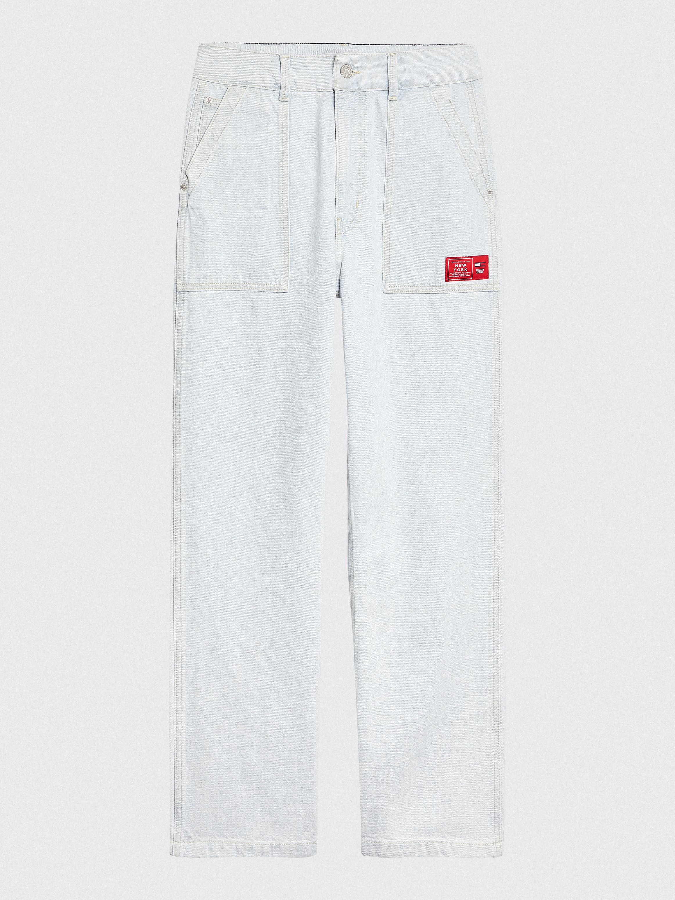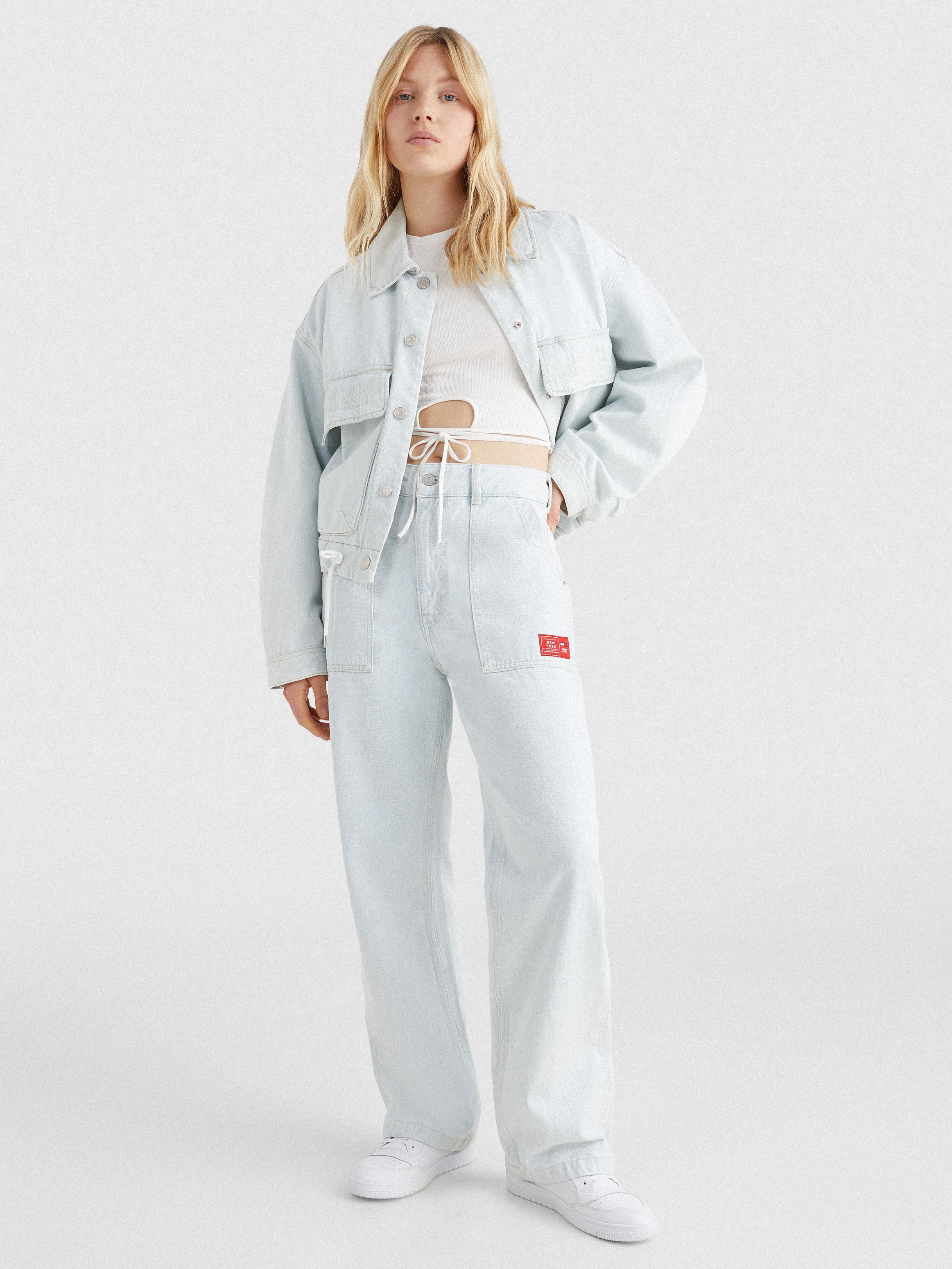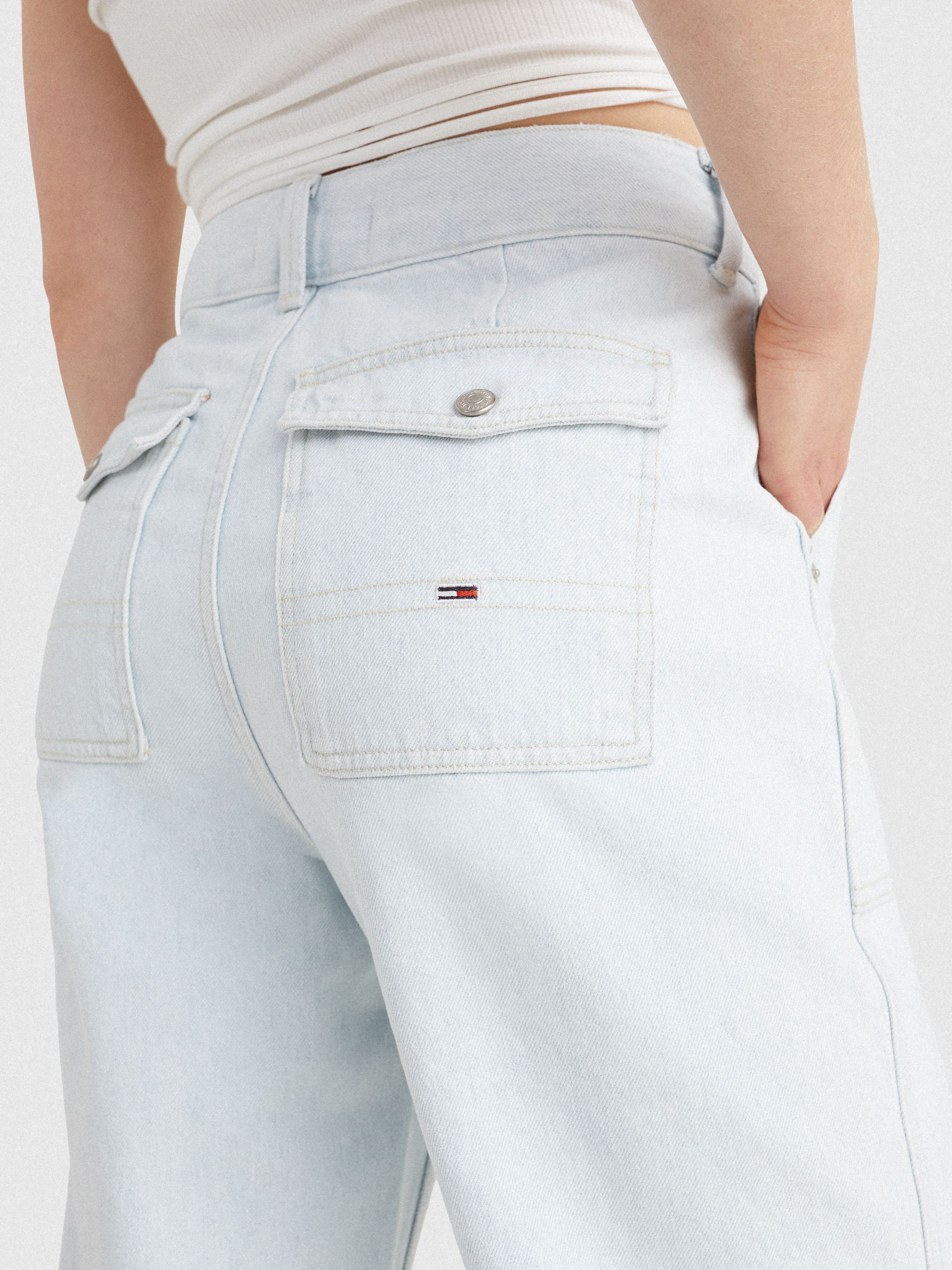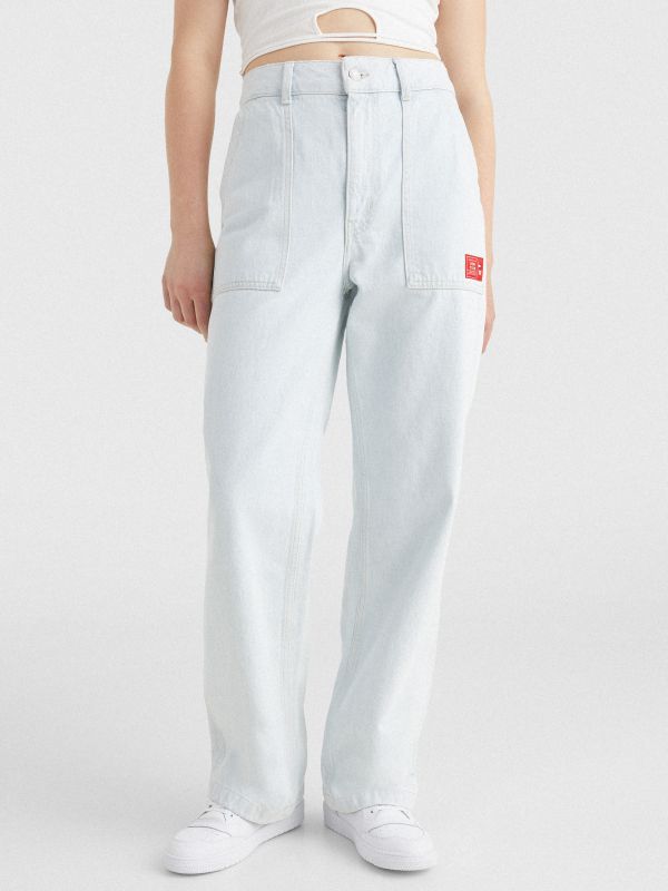 أضيفي قطعة مميزة إلى مجموعتك واحصلي على بنطلون جينز من القطن، ويتميز بتطريز الشعار على الجيب.
