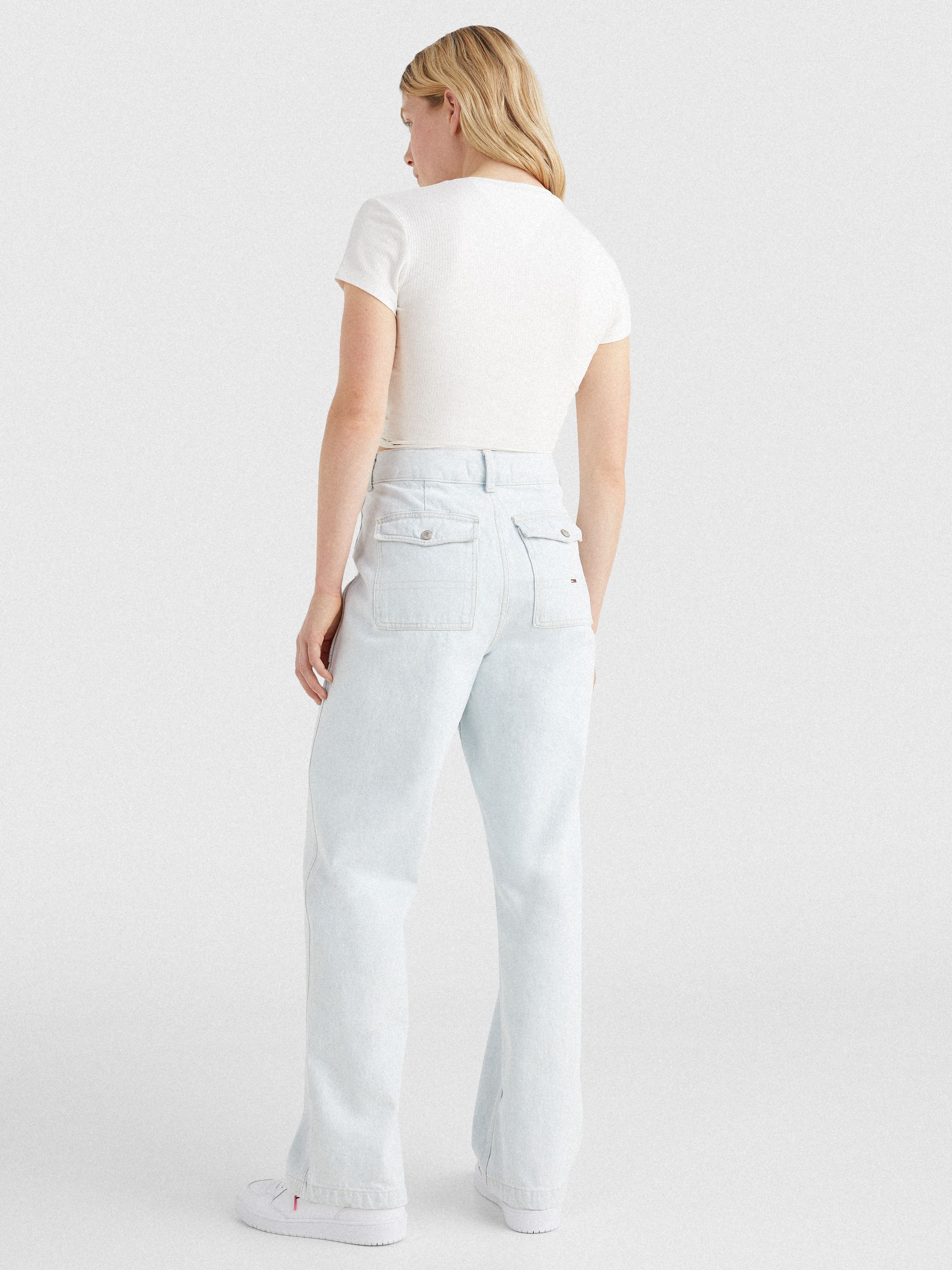• بنطلون جينز بقصة مستقيمة وخصر عالي