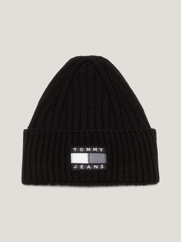 احصل على قبعة بيني كلاسيكية مزينة بشعار تومي جينز وبتفاصيل العلامة التجارية بارزة على الجزء الأمامي من الأساور.