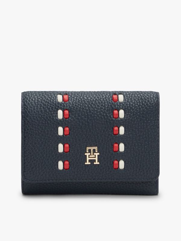 أضِف لمسة مميزة إلى مجموعتك من الإكسسوارات مع هذه المحفظة ثلاثية الطي، والمزوّدة بلوحة حروف TH وتفاصيل توقيع أنيقة. أبرز التفاصيل • نسيج محبّب • تصميم ثلاثي الطي • إغلاق بزر كبّاس • جيبان داخليان للأوراق النقدية • عدّة فتحات داخلية للبطاقات • جيب خارجي بسحّاب • تفاصيل توقيع على الأمام • لوحة حروف TH على الأمام • شعار تومي هيلفيغر منقوش على الطيّة • شعار تومي هيلفيغر القصة والمقاس • ‎12 × 3.5 × 9 سم الخامة والعناية • ‎100% بولي يوريثان