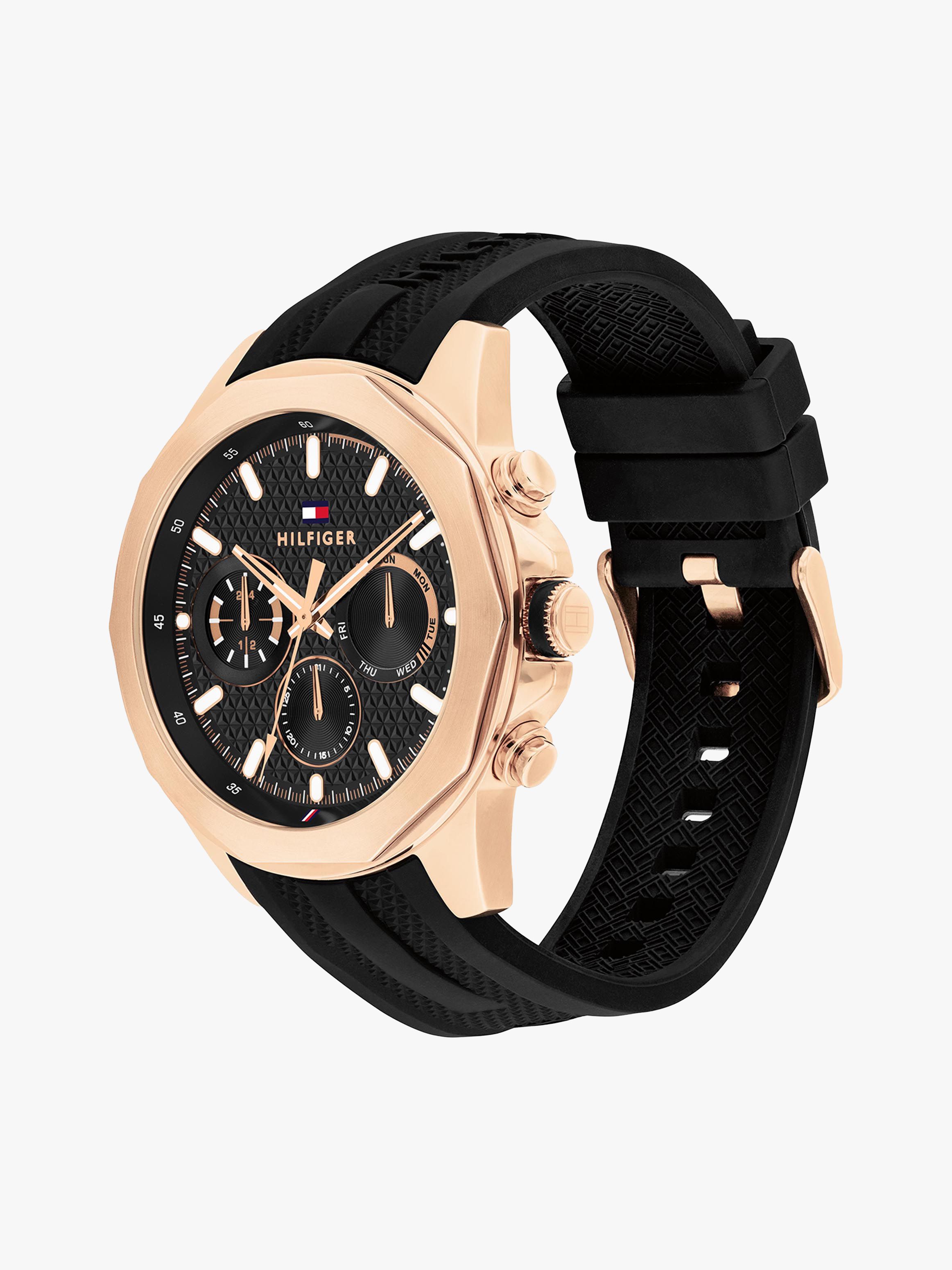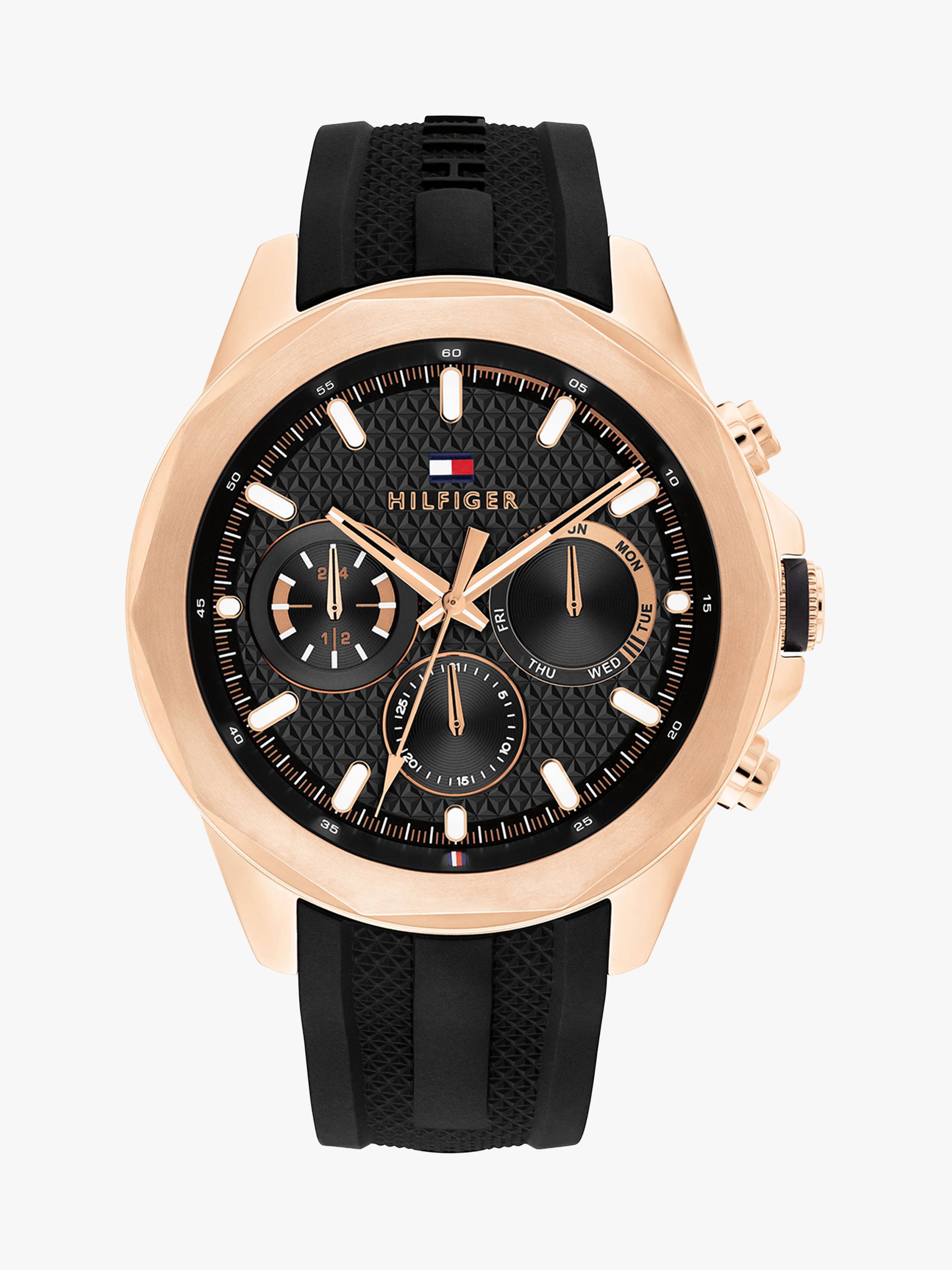 ادخل إلى نبض المدينة مع هذه الساعة من تومي هيلفيغر، حيث يلتقي التصميم الهندسي الجريء بالأناقة العصرية. تتميز بعلبة حديثة بطبقتين وميناء بنسيج ثلاثي الأبعاد مع علامات بارزة، ما يمنحها طابعًا عصريًا. عيون فرعية بقَطع CD مع حلقات مقطوعة بالماس وعلم TH الأيقوني تضيف لمسة تميز. متعددة الوظائف مع عيون فرعية ليوم الأسبوع، 24 ساعة والتاريخ، فهي عملية وأنيقة في آن واحد. اختر بين أساور مدمجة أو أحزمة سيليكون لإكمال مظهرك.