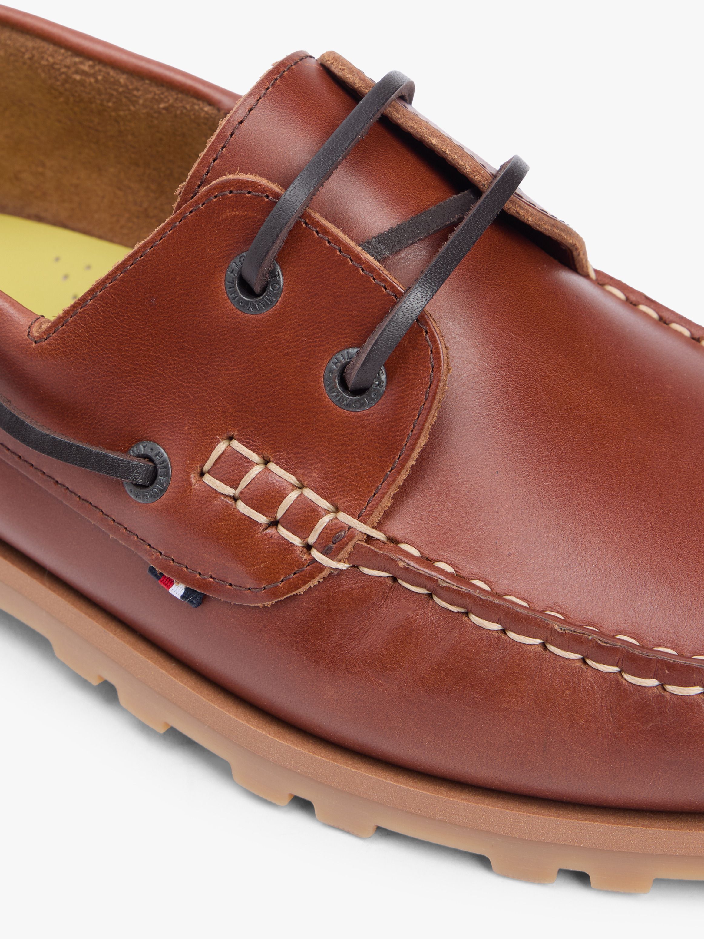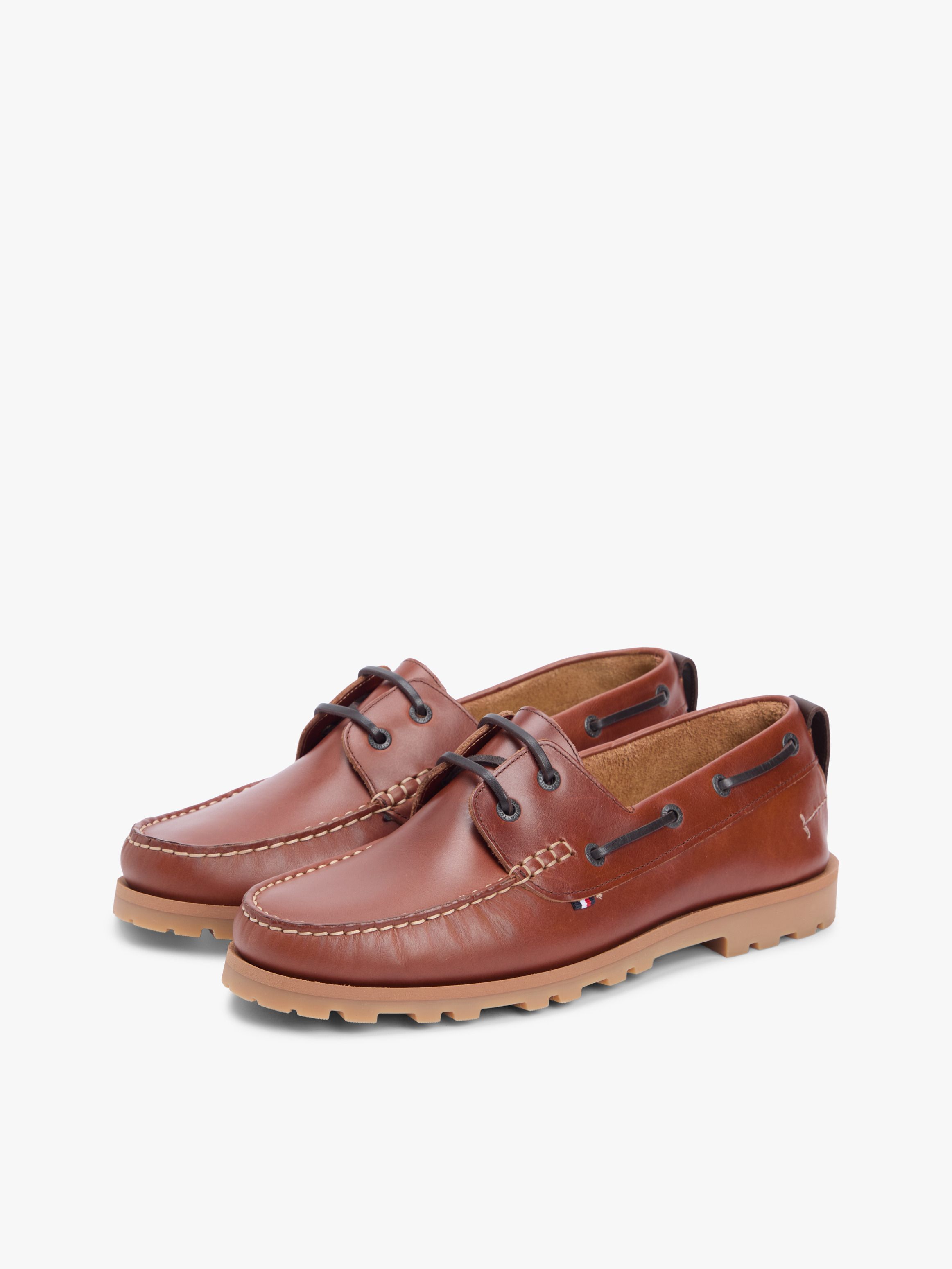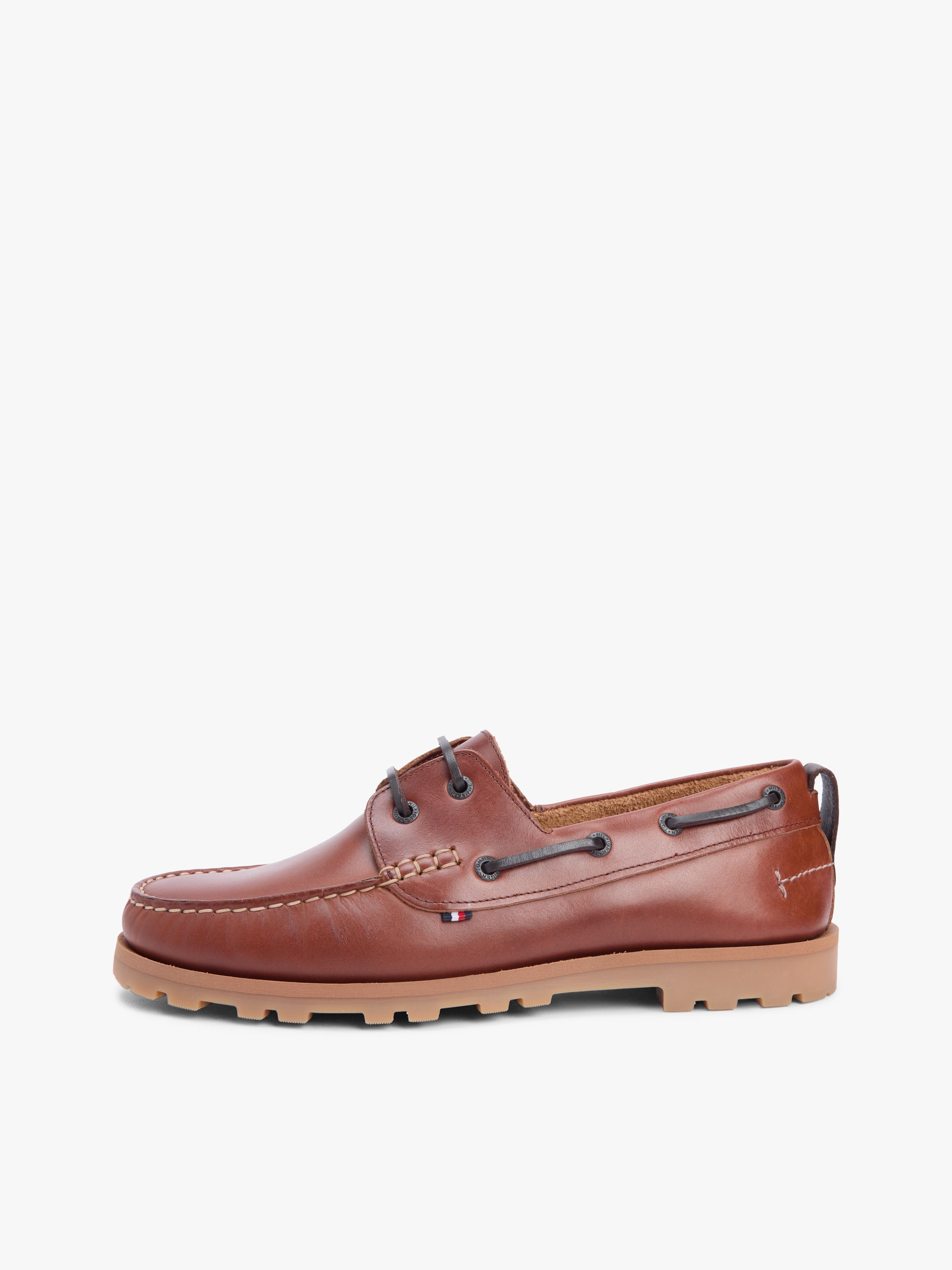 أضف لمسة بحرية إلى إطلالتك مع أحذية القارب الجلدية خفيفة الوزن هذه، والمزودة بنعال وسطية ثنائية اللون لتباين بسيط.