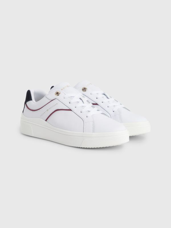 • جزء علوي من الجلد • مصدره مجموعة أعمال التصميم الجلدية • بطانة بوليستر معاد تدويره • نعل داخلي من البولي يوريثين والبولي يوريثين المعاد تدويره والمطاط الحراري المعاد تدويره • نعل خارجي من المطاط الحراري • نعل • فتحات علوية من تومي هيلفيغر • شعار تومي هيلفيغر المعدني منقوش على الجانب • علامة تومي هيلفيغر التجارية