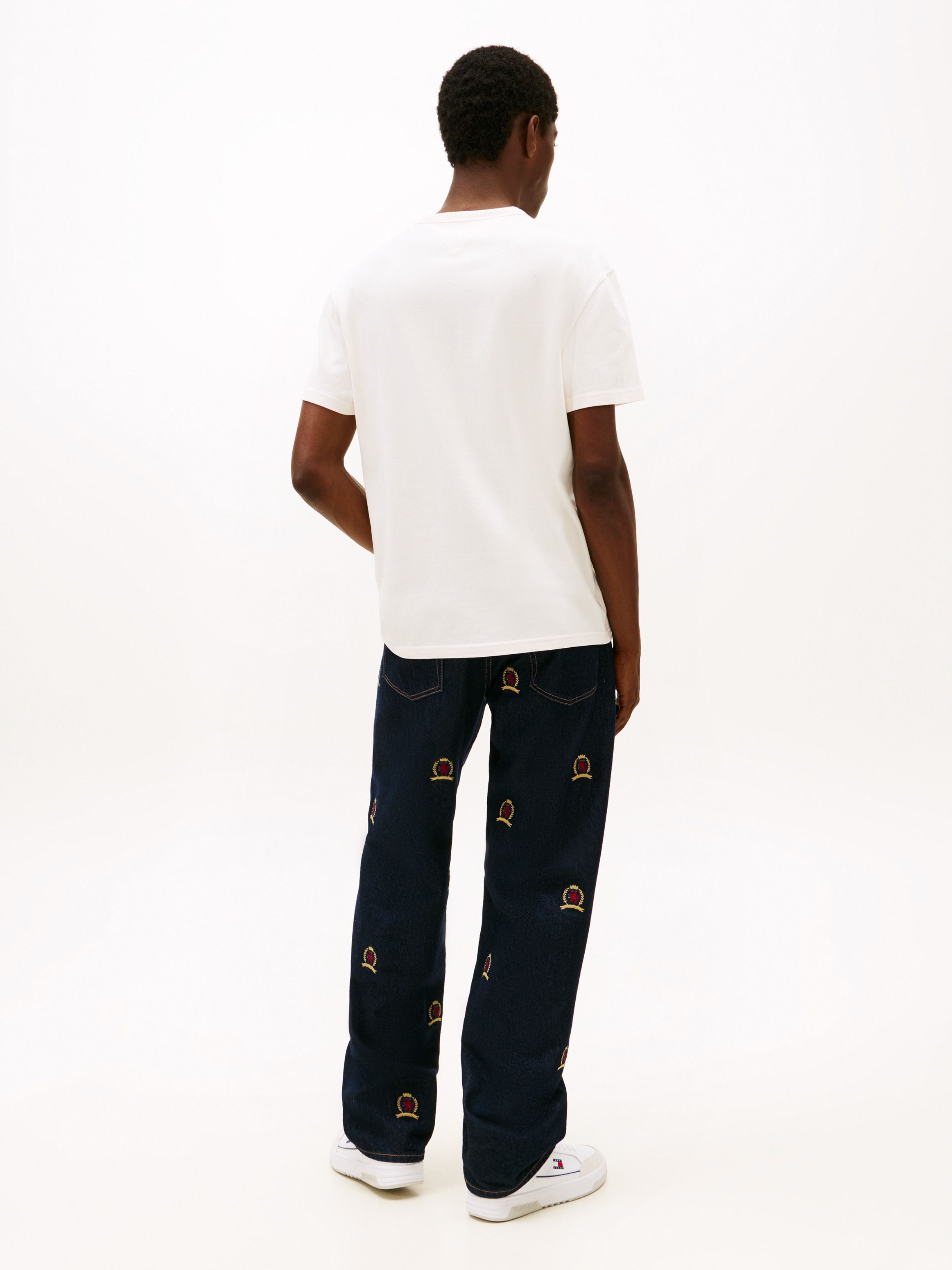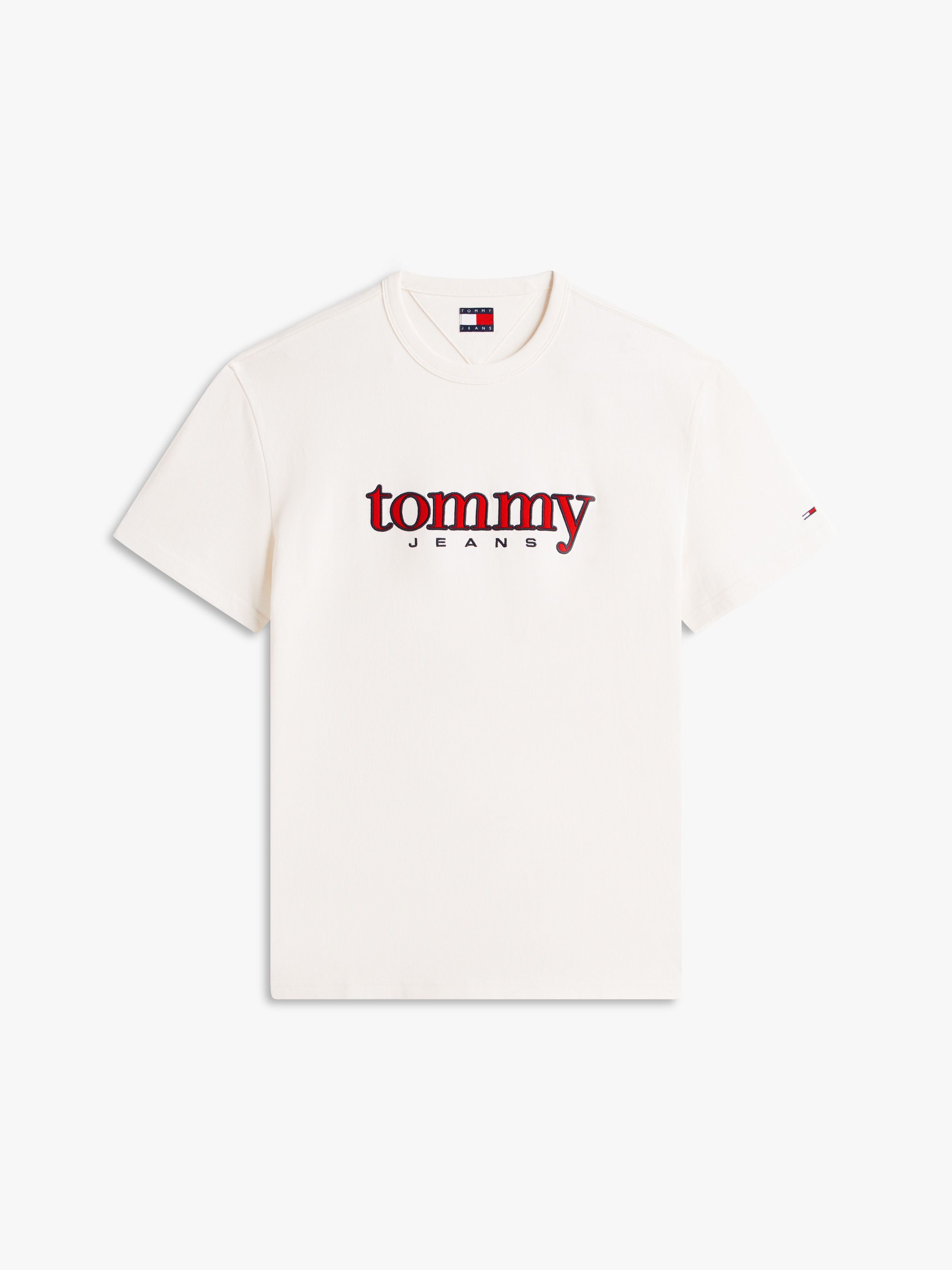 يمنحك هذا التيشيرت بقصّة عادية مظهرًا فاخرًا بفضل تصميمه من جيرسي القطن الخالص الثقيل والمُشط، مع لمسات أبليك مطرزة لشعار تومي جينز على الصدر.