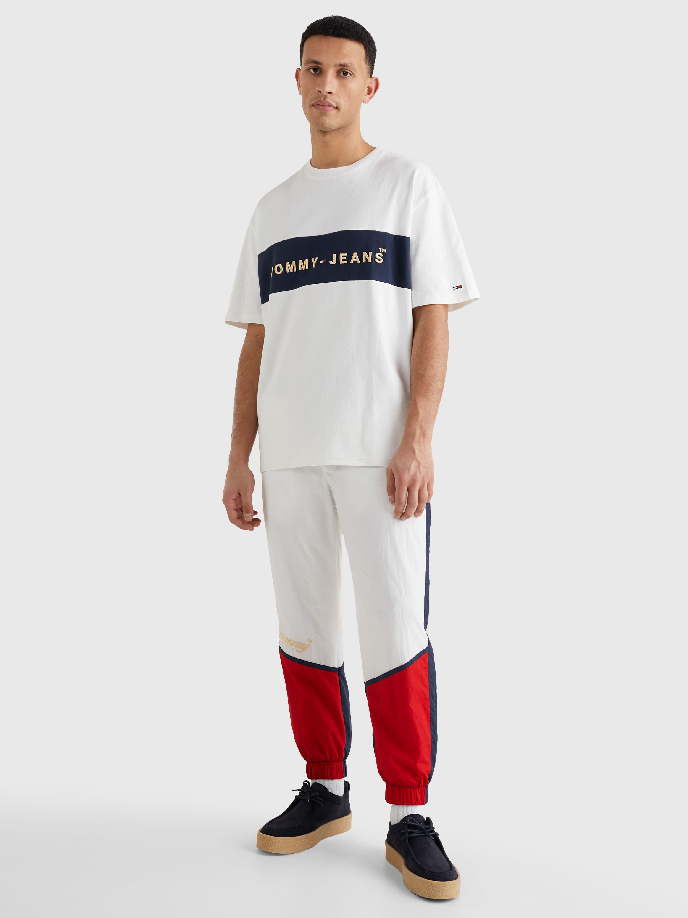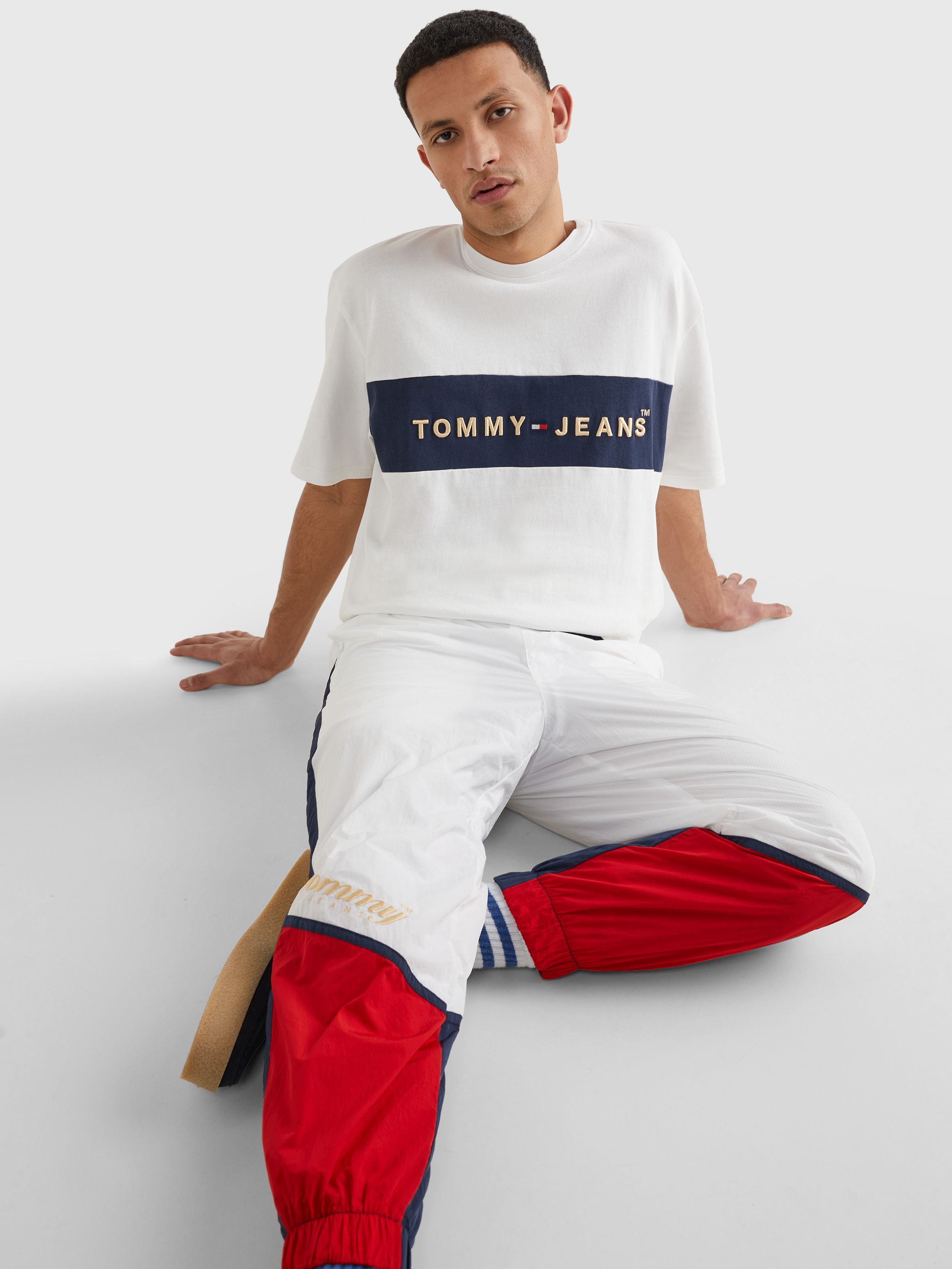يتميز هذا التيشيرت بتصميم كلاسيكي وبتطريز شعار تومي جينز على الصدر بألوان متناسقة.