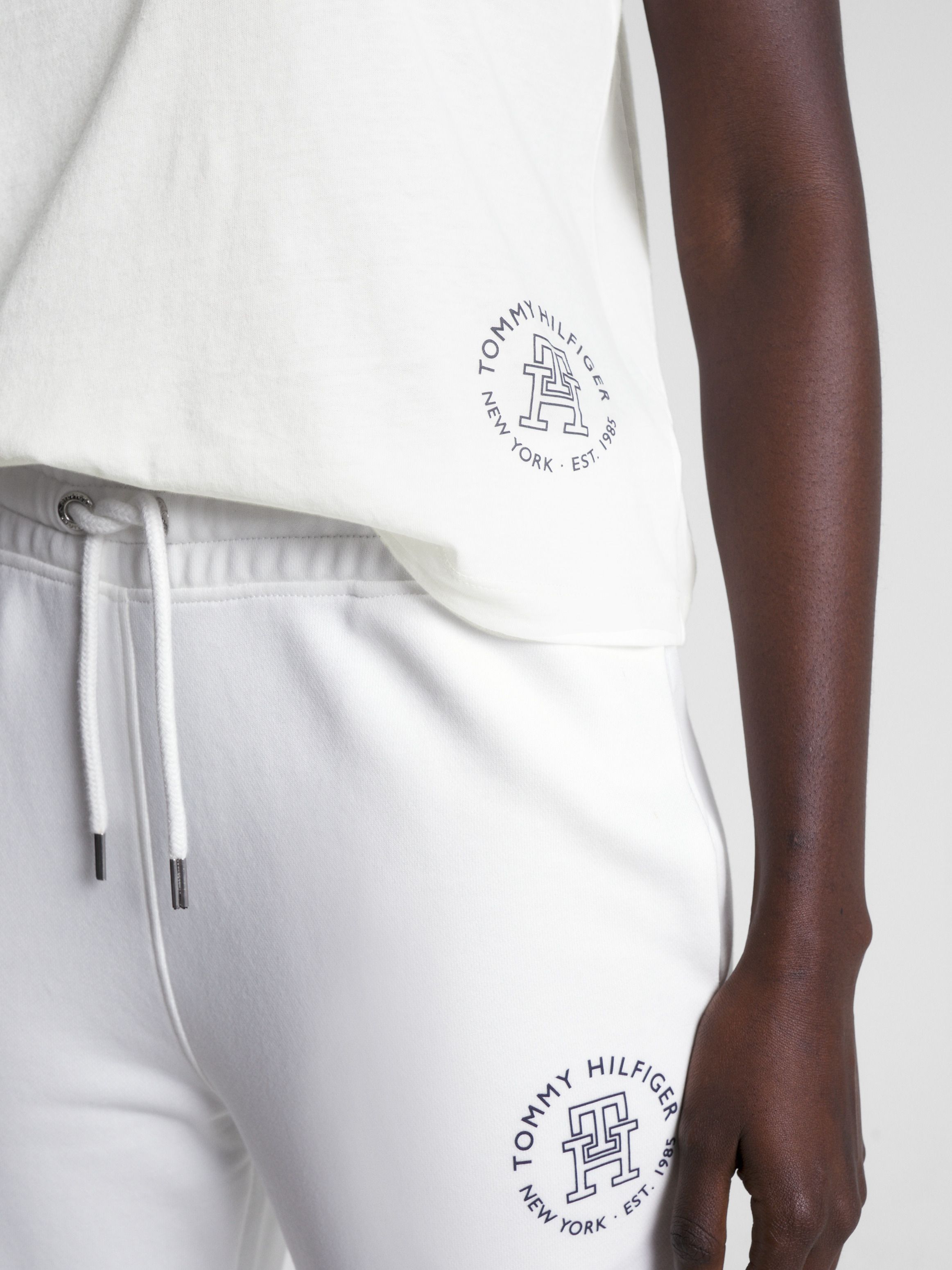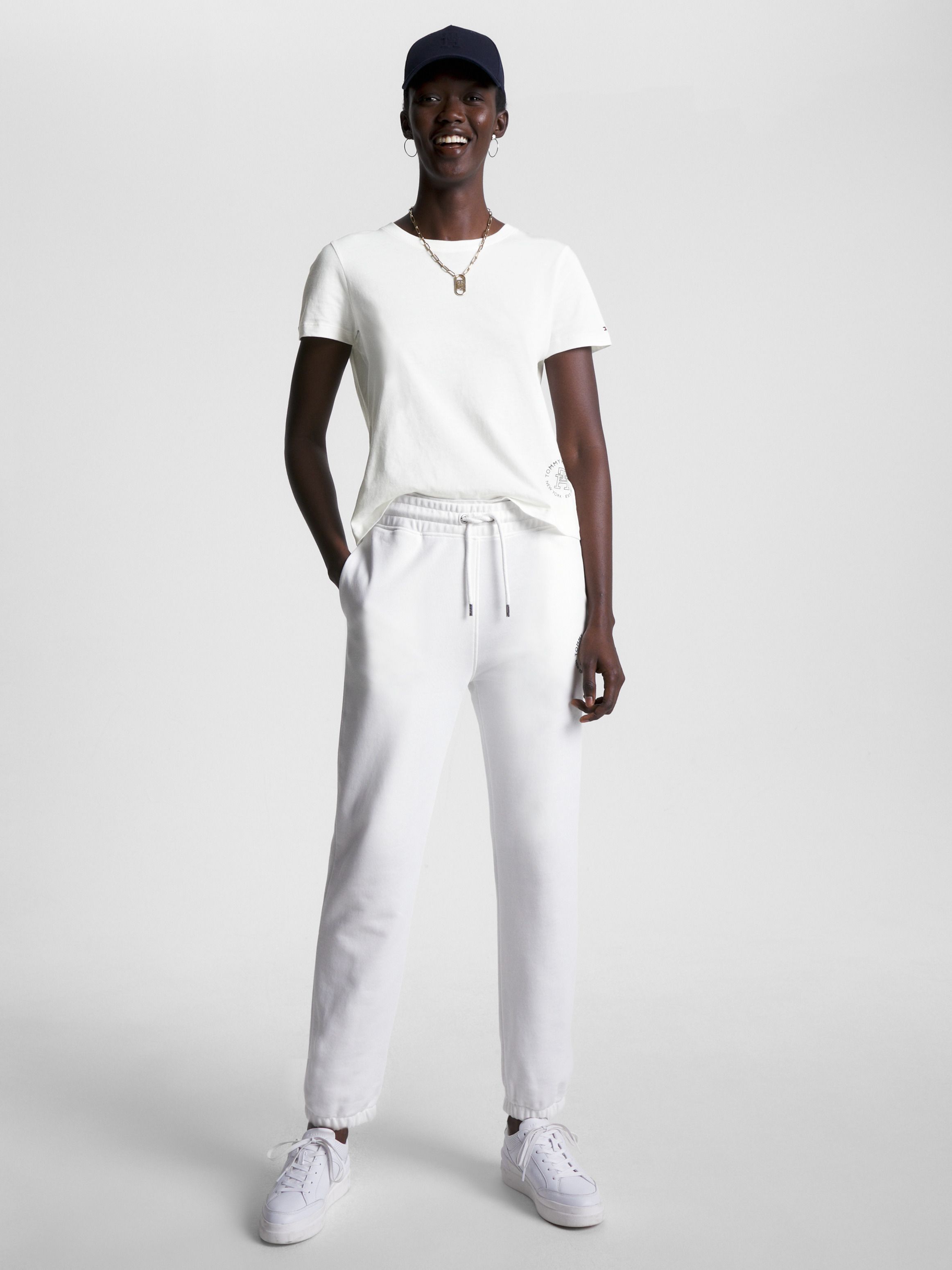 ارتقي بإطلالتك مع تيشيرت قطن بياقة دائرية، حيث يوفر لكِ مظهر أنيق بفضل شعار تومي هيلفيغر على الجانب.