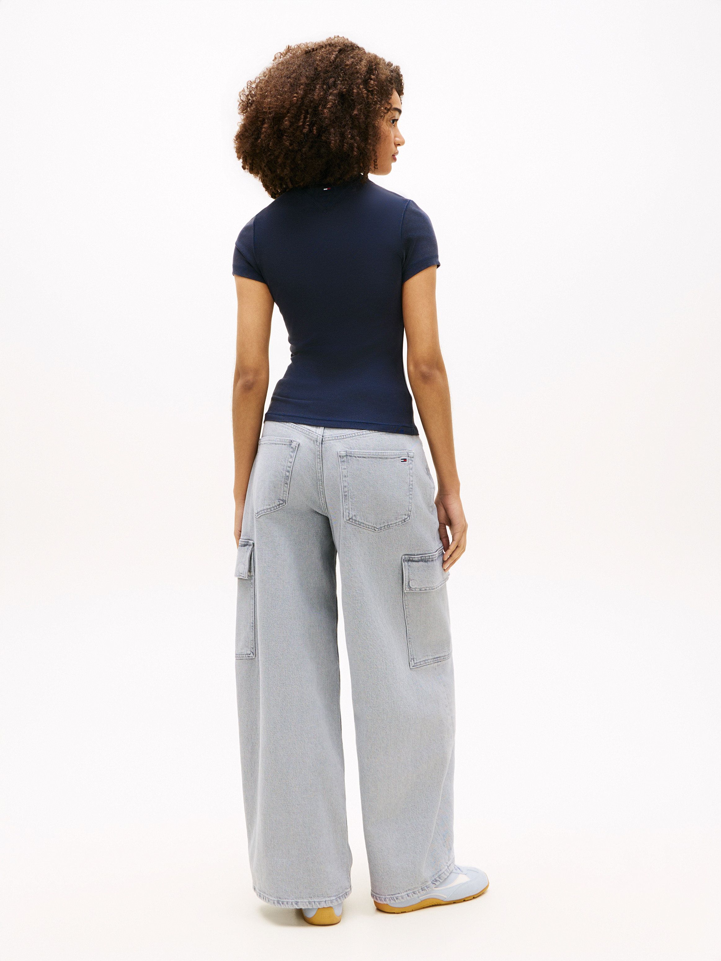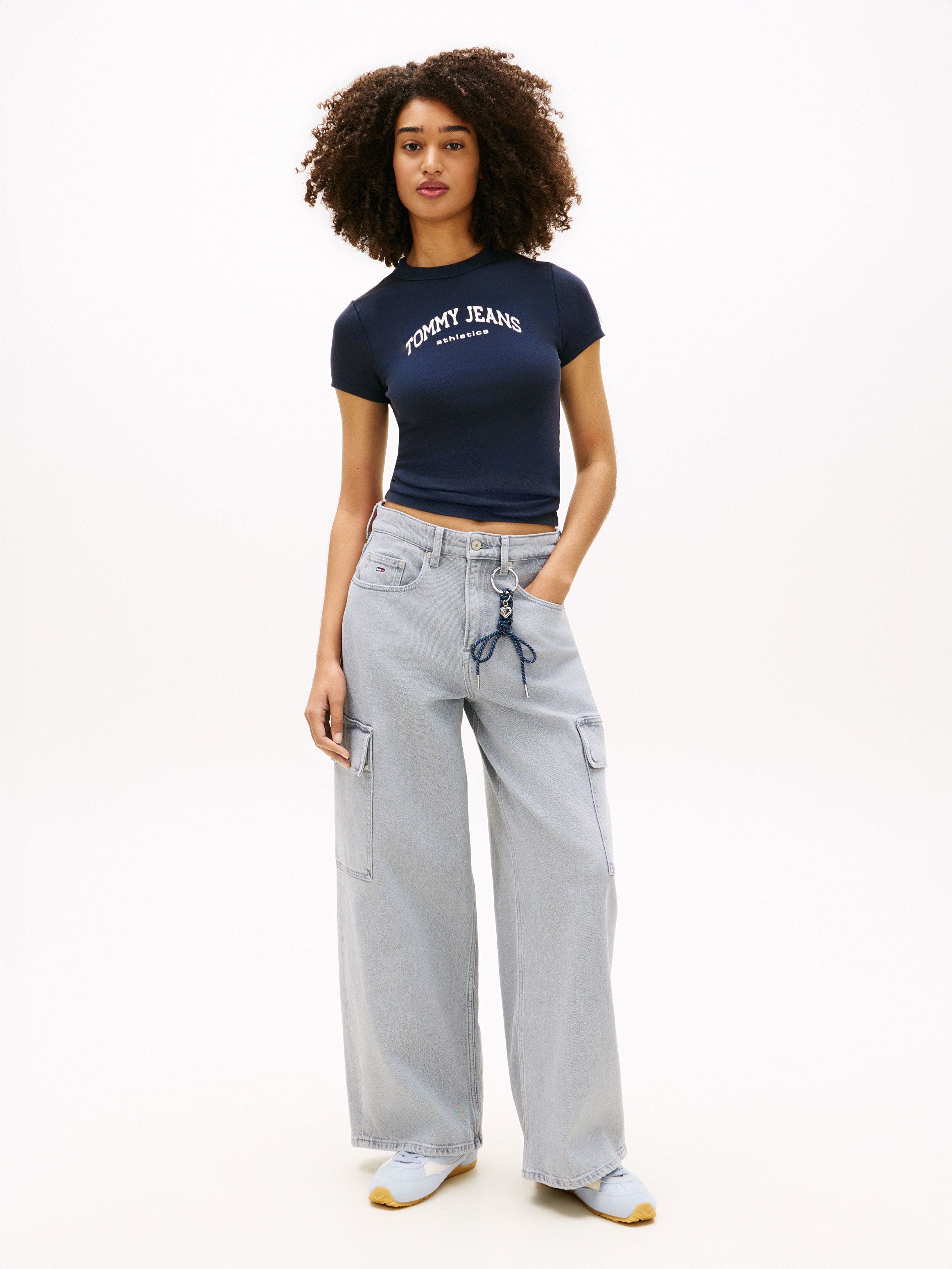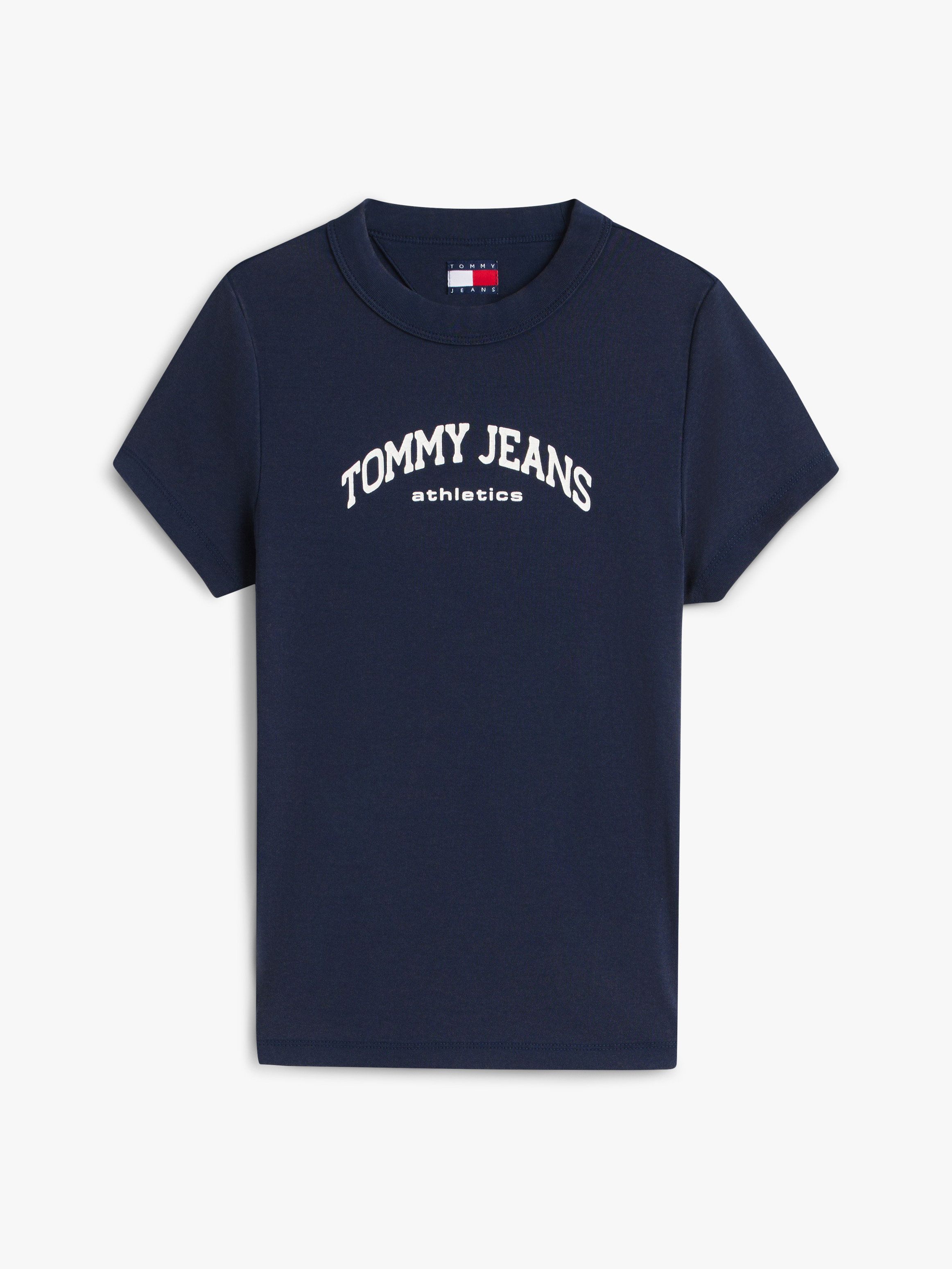 تم تصميم هذا التيشيرت بياقة دائرية بقصة ضيّقة أنيقة من قطن مطاطي، ومزيّن بشعار مستوحى من أسلوب الجامعات على الأمام.