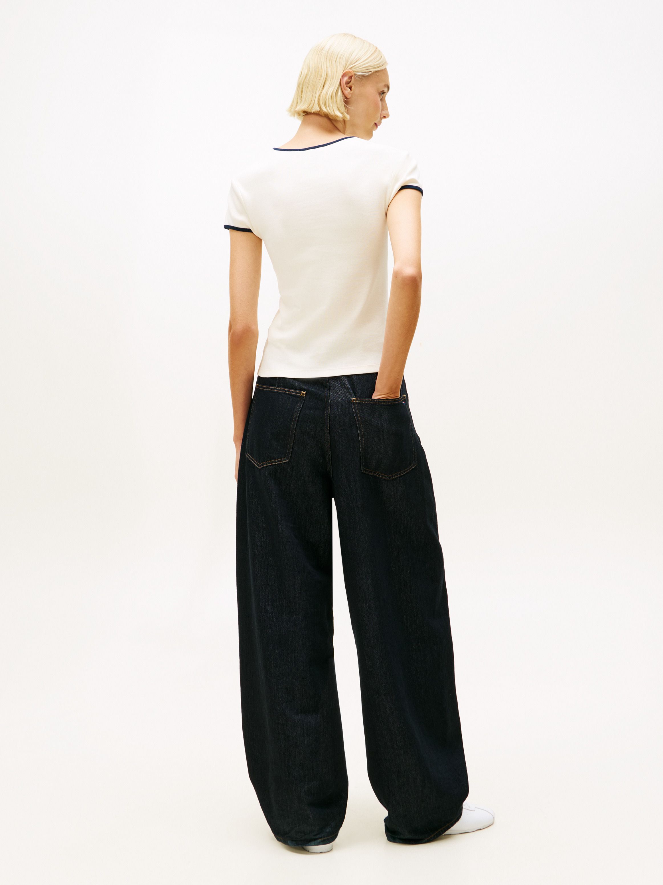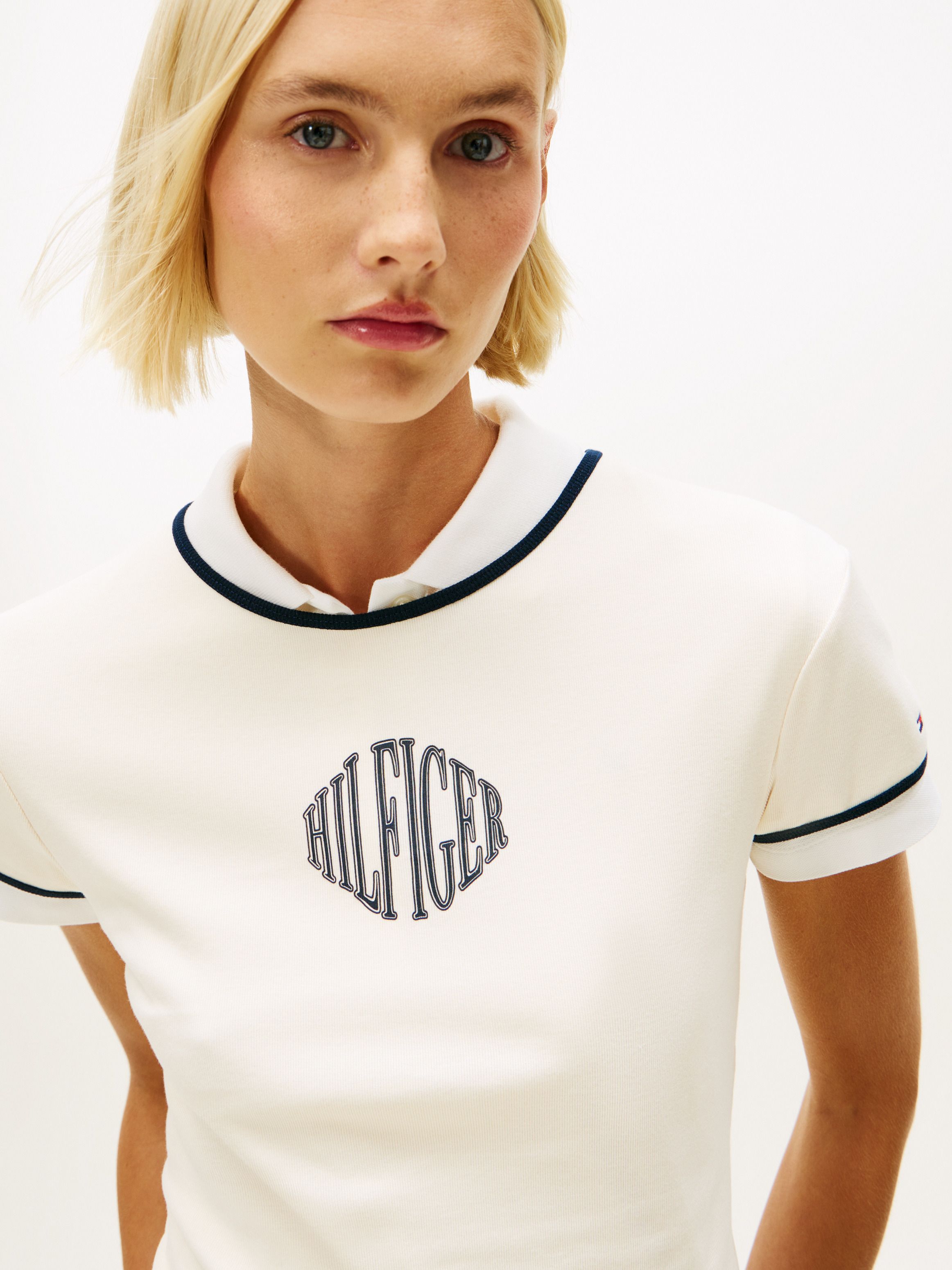 تيشيرت مستوحى من ستايل الفارسيتي القديم بقصّة ضيقة وتفاصيل Ringer متباينة على الياقة والأكمام تمنحك لمسة رياضية كلاسيكية بلمسة عصرية.