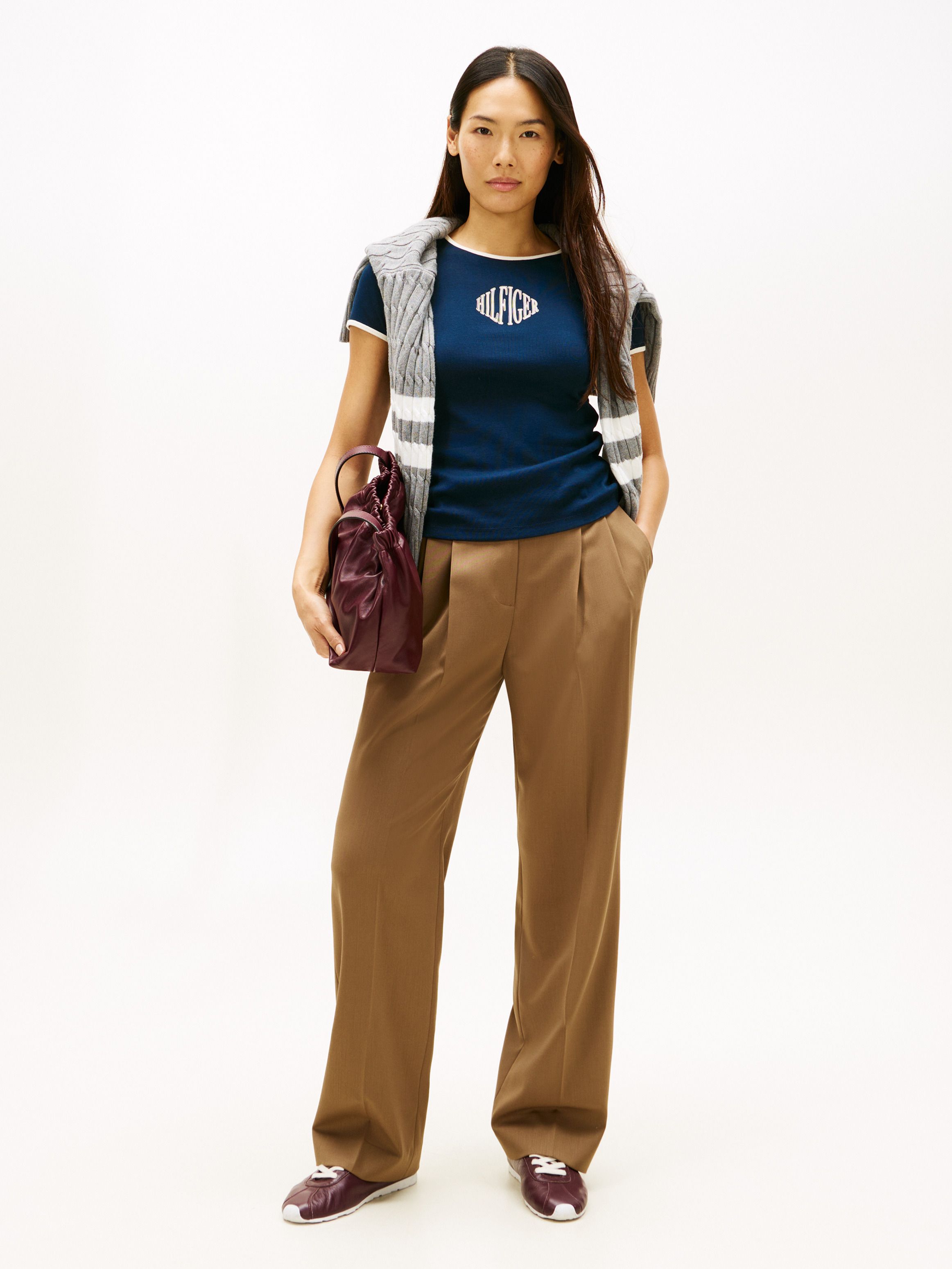 تيشيرت مستوحى من ستايل الفارسيتي القديم بقصّة ضيقة وتفاصيل Ringer متباينة على الياقة والأكمام تمنحك لمسة رياضية كلاسيكية بلمسة عصرية.