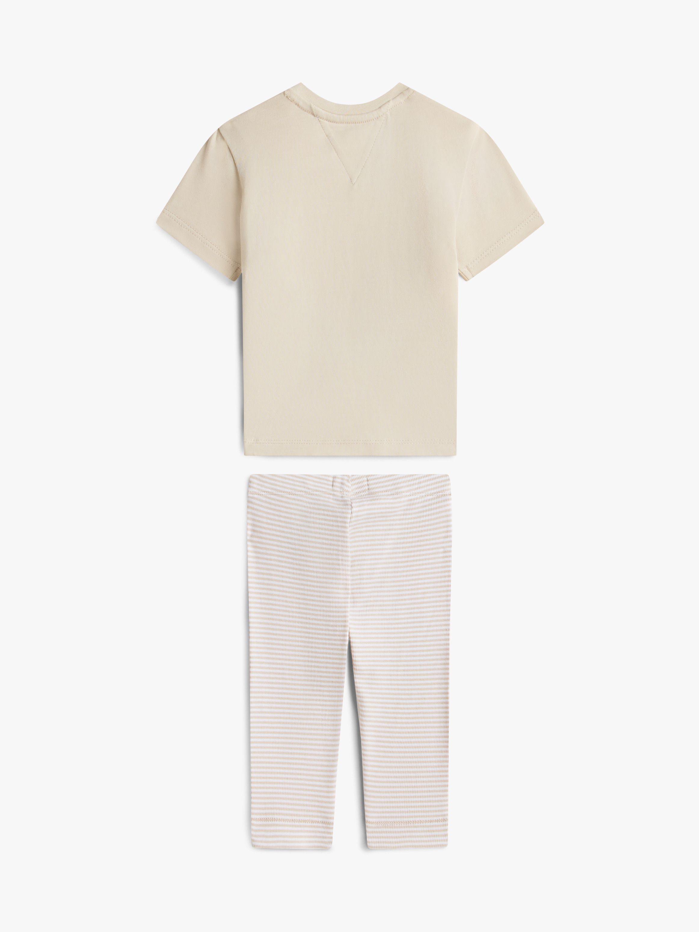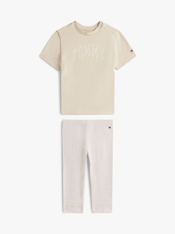 طقم لطيف من قطن مطاطي مريح يضم تيشيرت وليغنز مضلع متناسق لإطلالة يومية سهلة ومناسبة للحركة.