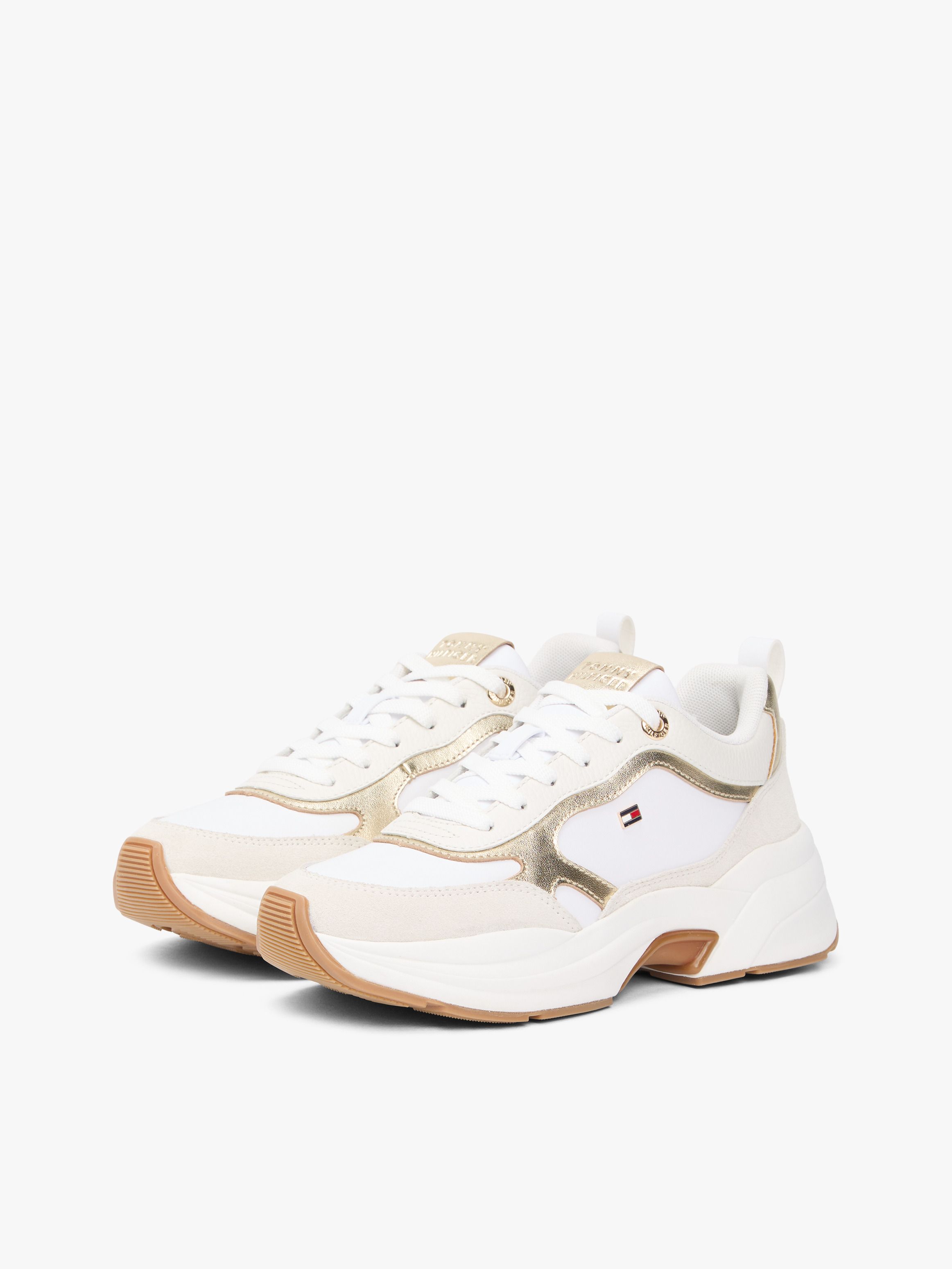 أضف لمسة ديناميكية لإطلالاتك مع هذا الحذاء الرياضي المستوحى من ستايل الركض بتصميم ضخم من التسعينات، مع طبقة علوية من جلد نابا مزدانة بتفاصيل معدنية فاخرة. أبرز التفاصيل • طبقة علوية من جلد نابا • بطانة من البوليستر • نعل داخلي قابل للإزالة من البولي يوريثان وأقمشة أخرى ومطاط حراري • نعل خارجي مطاطي • طبقات بخامات متعددة الملمس • تفاصيل معدنية على الجزء العلوي • حلقة سحب خلفية • فتحات علوية للرباط من تومي هيلفيغر • شعار تومي هيلفيغر منقوش على الكعب واللسان • علامة تومي هيلفيغر المميّزة • علم تومي هيلفيغر المطلي بالمينا على الجانب القصة والمقاس • بتصميم منخفض • إغلاق برباط • نعل ضخم الخامة والعناية • 100% جلد