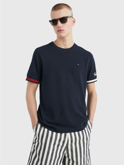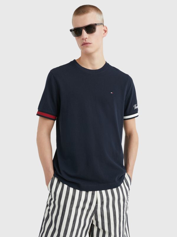 احصل على تيشيرت مزين بالتوقيع على الكم، حيث يمنحك لمسة أنيقة من تومي كول في أيام العطلة.