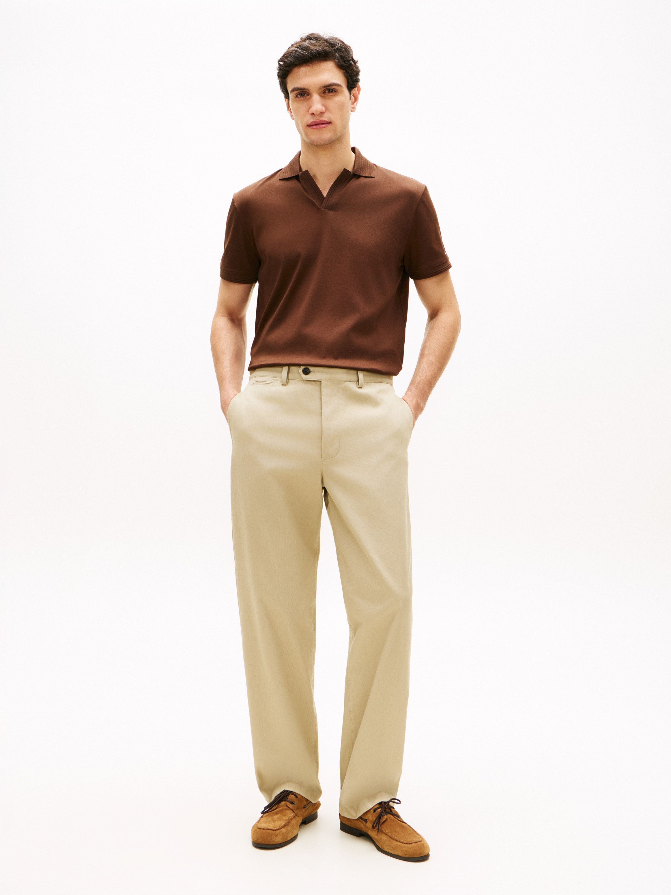 تم تصميم هذا القميص البولو متعدد الاستخدامات من قطن ميرسريز نقي بقصة عادية، مع تفاصيل بنسيج بارز على الياقة.