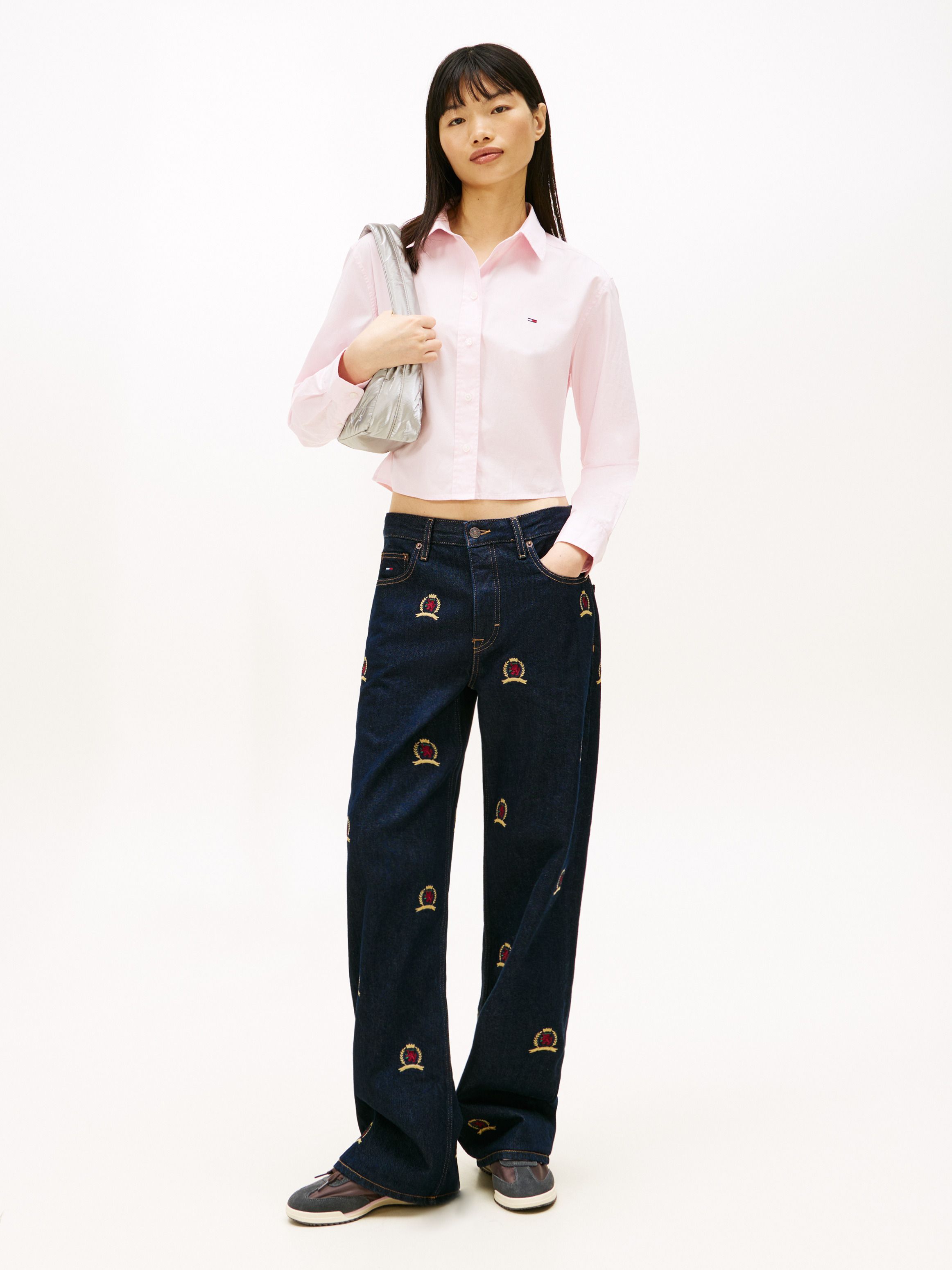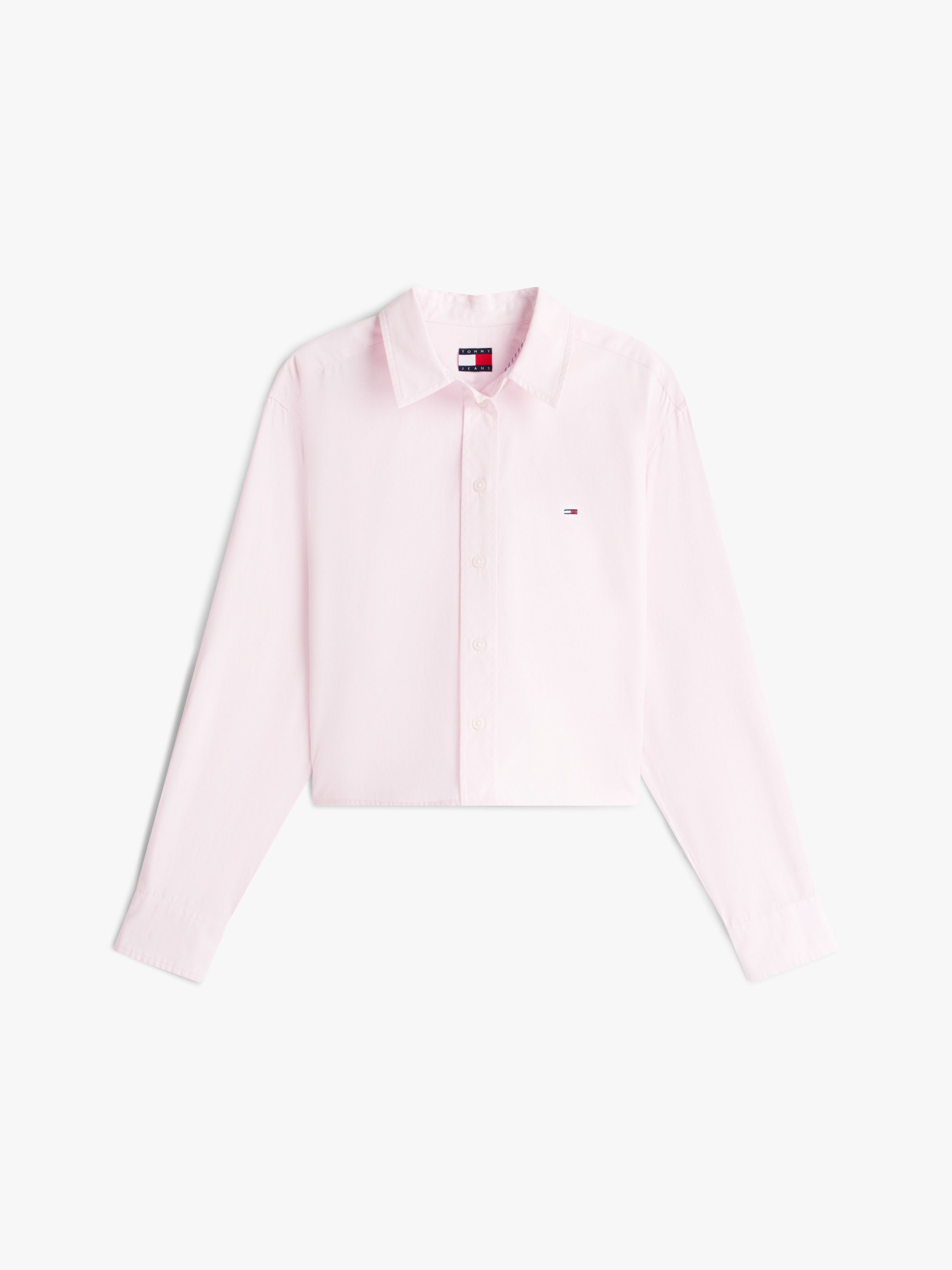 يمنحك هذا القميص المصنوع من بوبلين القطن النقي إطلالة أنيقة بفضل قصّته القصيرة والمريحة التي تبرز شكلاً انسيابيًا وعصريًا.
