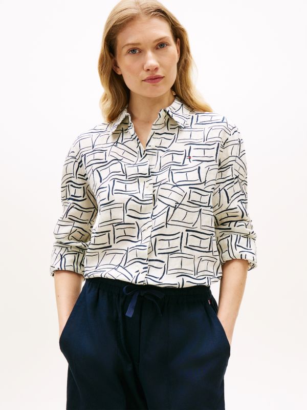 قميص من الكتان النقي بقصة مريحة