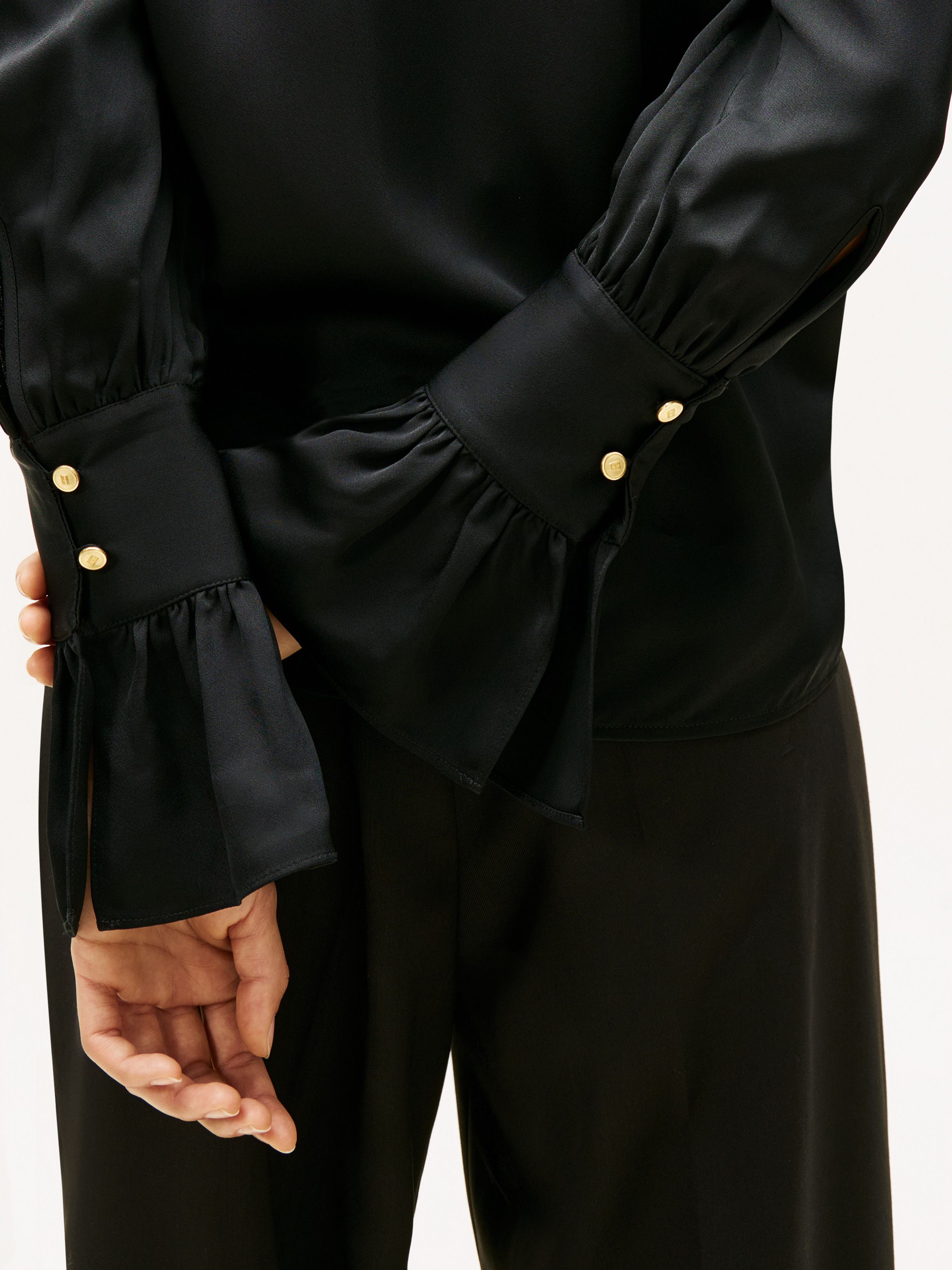 عبّري عن أنوثتك بأسلوب لافت في المناسبات الخاصة مع هذا القميص المصمم بقصّة مريحة، مصنوع من قماش ساتين الفيسكوز الناعم بانسيابية أنيقة ويزدان بأساور بكشكشة تضيف لمسة درامية متقنة.