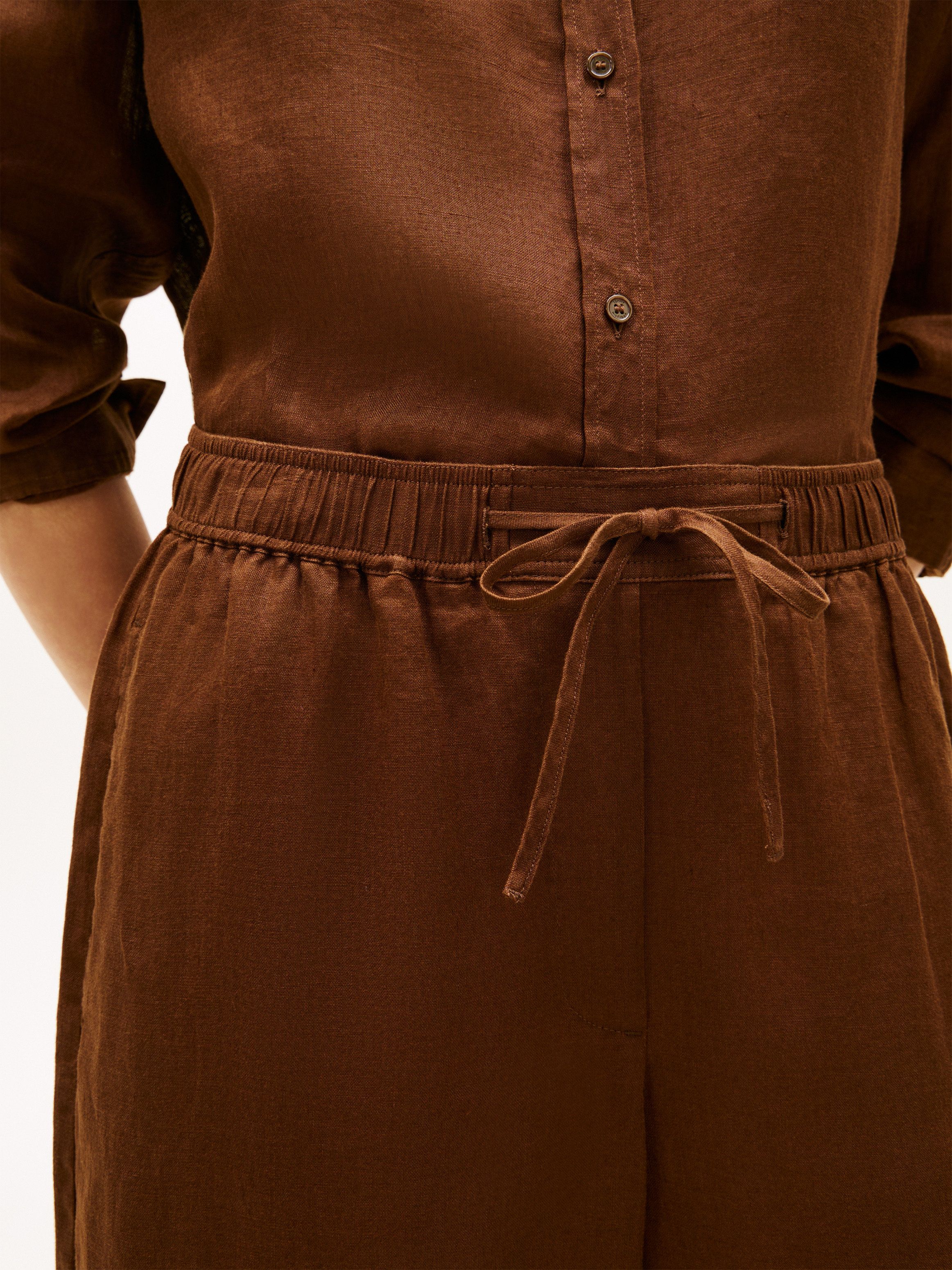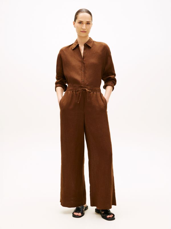 هذه البناطيل الواسعة الأنيقة بقصة مريحة مصنوعة من كتان خالص فاخر مصبوغ ليمنح ألواناً أعمق.
