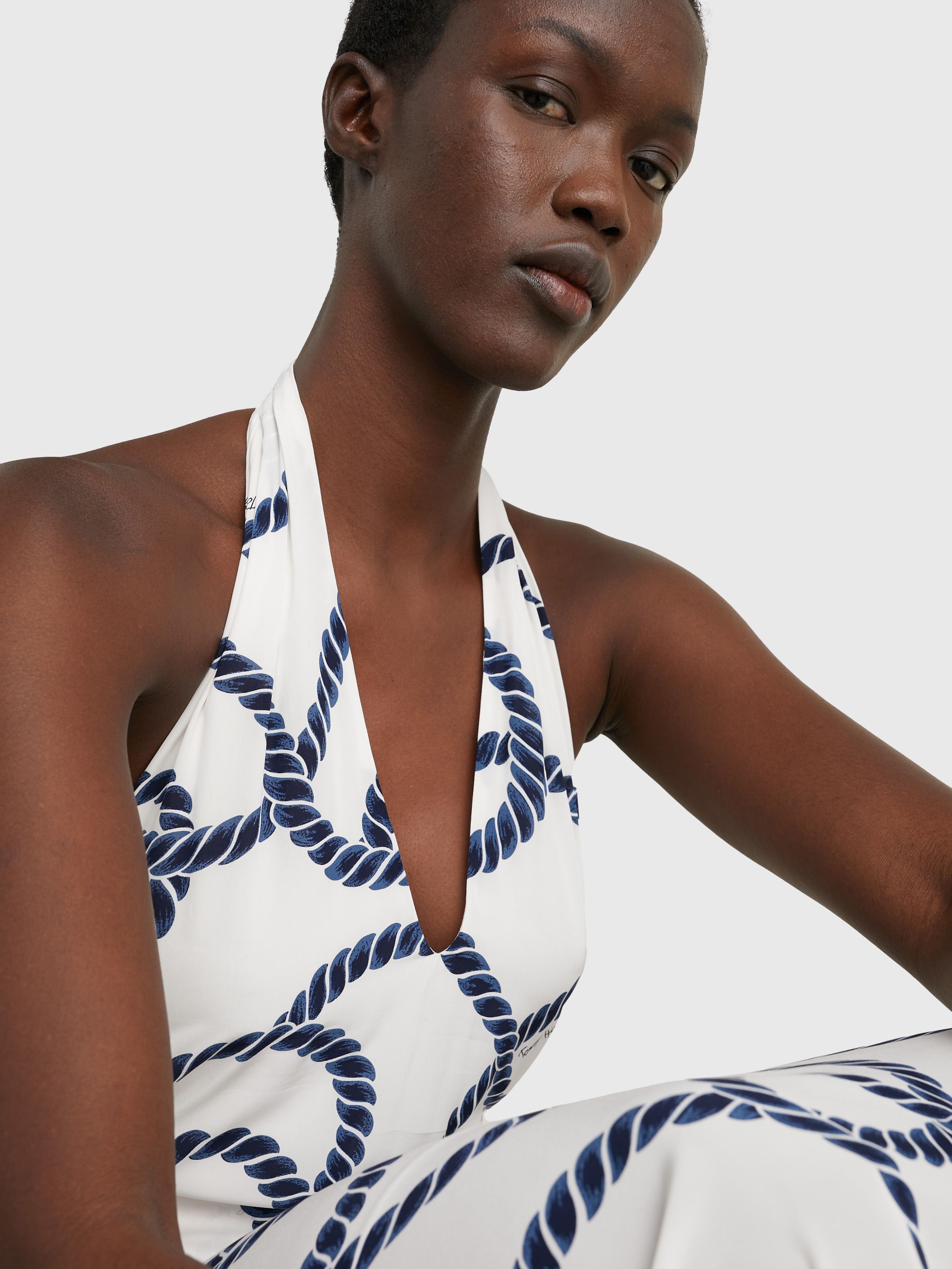 تألقي مع فستان ماكسي بدون أكمام والذي يتميز بطبعة الحبل التي تخطف الأنظار من حولك.