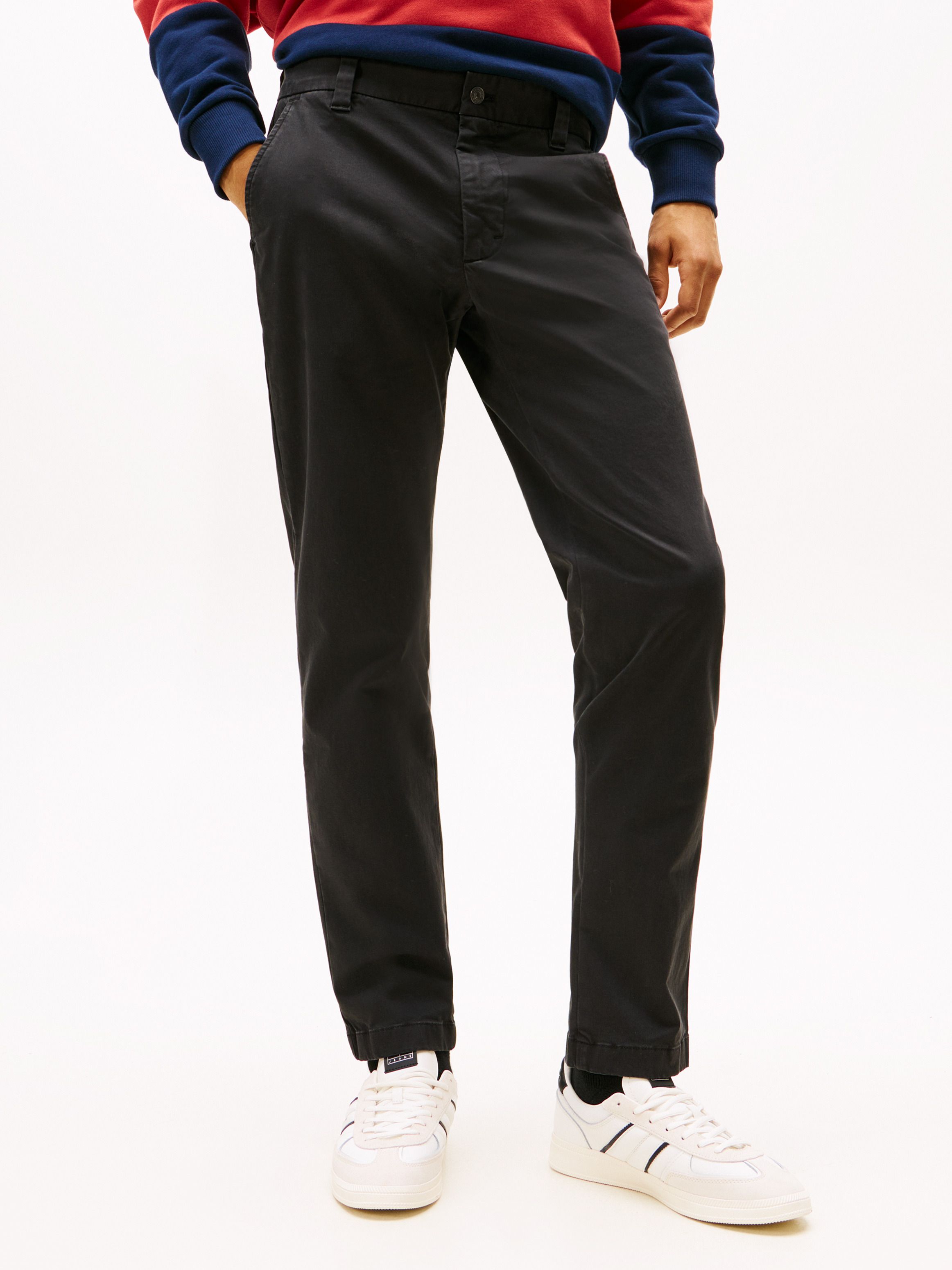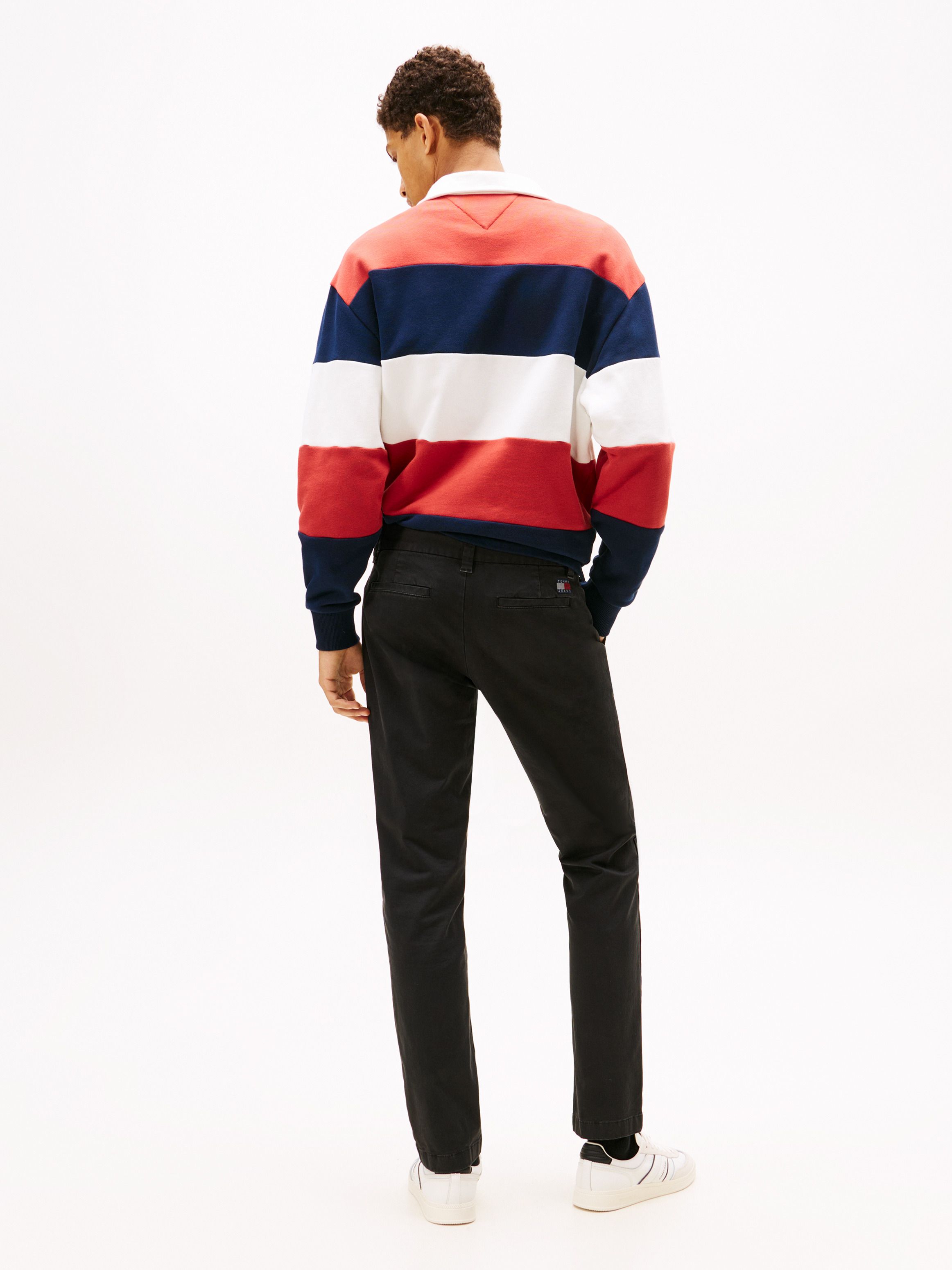 لإطلالة أنيقة بإحساس مريح، يأتي هذا البنطلون الشينو بقصّة ضيّقة، مصنوع من تويل القطن المعالج بتشطيب ناعم (Peached) لمرونة وانسيابية طوال اليوم. أبرز التفاصيل • تويل قطن مطاطي مع تشطيب ناعم • إغلاق بسحّاب وزر • جيبان منزلقان مائلان من الجانبين • جيبان ويلت بالخلف • شارة Tommy على الخلف • علامة Tommy Jeans القصة والمقاس • قصّة ضيّقة • العارض بطول 1.86 م ويرتدي مقاس 32/34 الخامة والعناية • 96% قطن، 4% إيلاستين