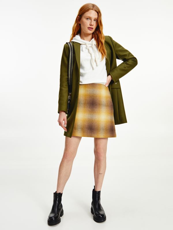 عودي إلى أجواء التسعينيات الراقية في هذه التنورة القصيرة المصنوعة من مزيج الصوف المعاد تدويره بتصميم كاروهات.