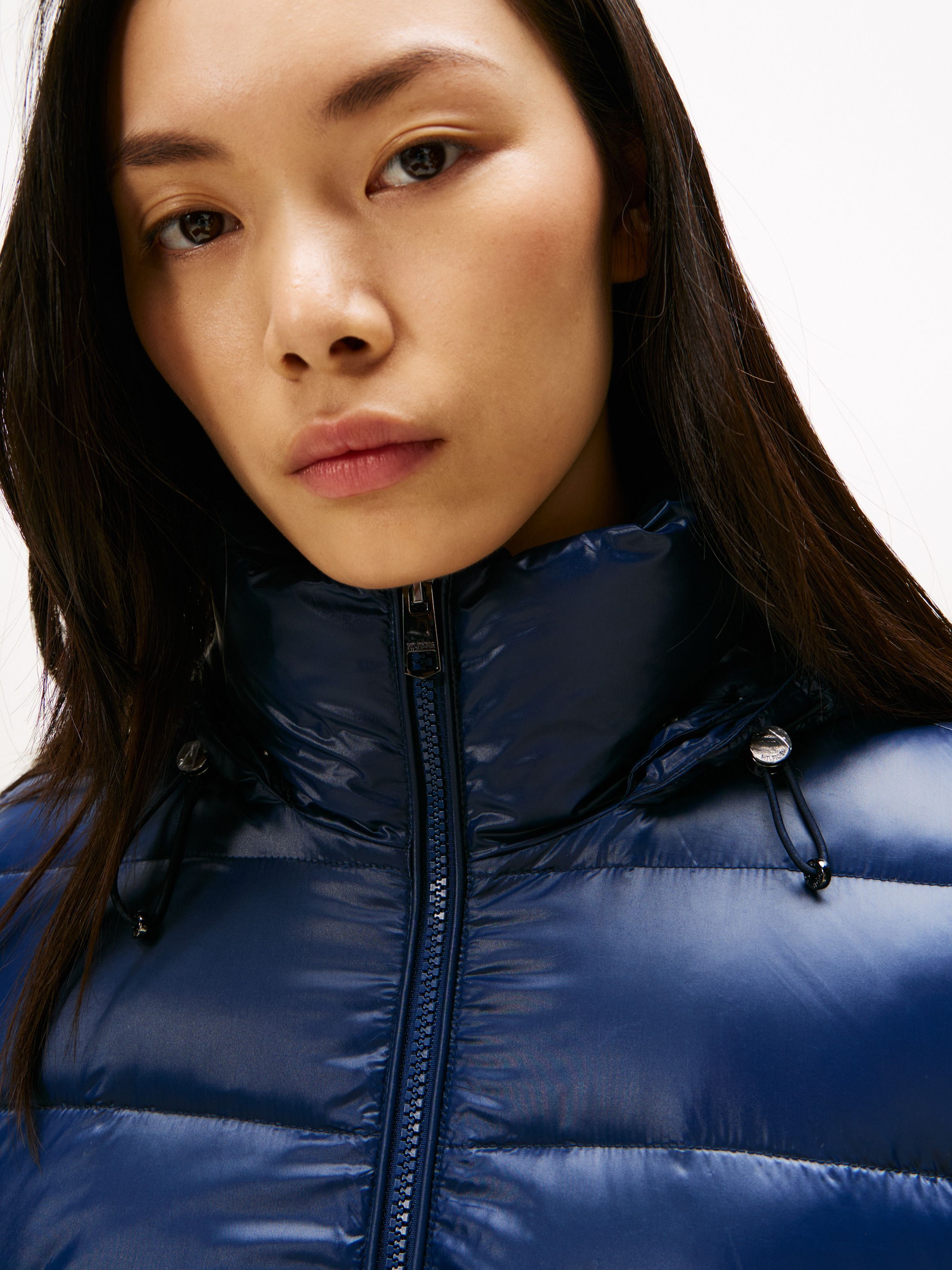 استعدي لأناقة الطقس البارد مع جاكيت لامع بغطاء رأس مقاوم للماء، يتميز بحشوة من الريش لدفء مثالي، وتصميم ضيق يعزز من شكل القوام، بالإضافة إلى رقعة شعار تضفي لمسة مميزة على الكم.