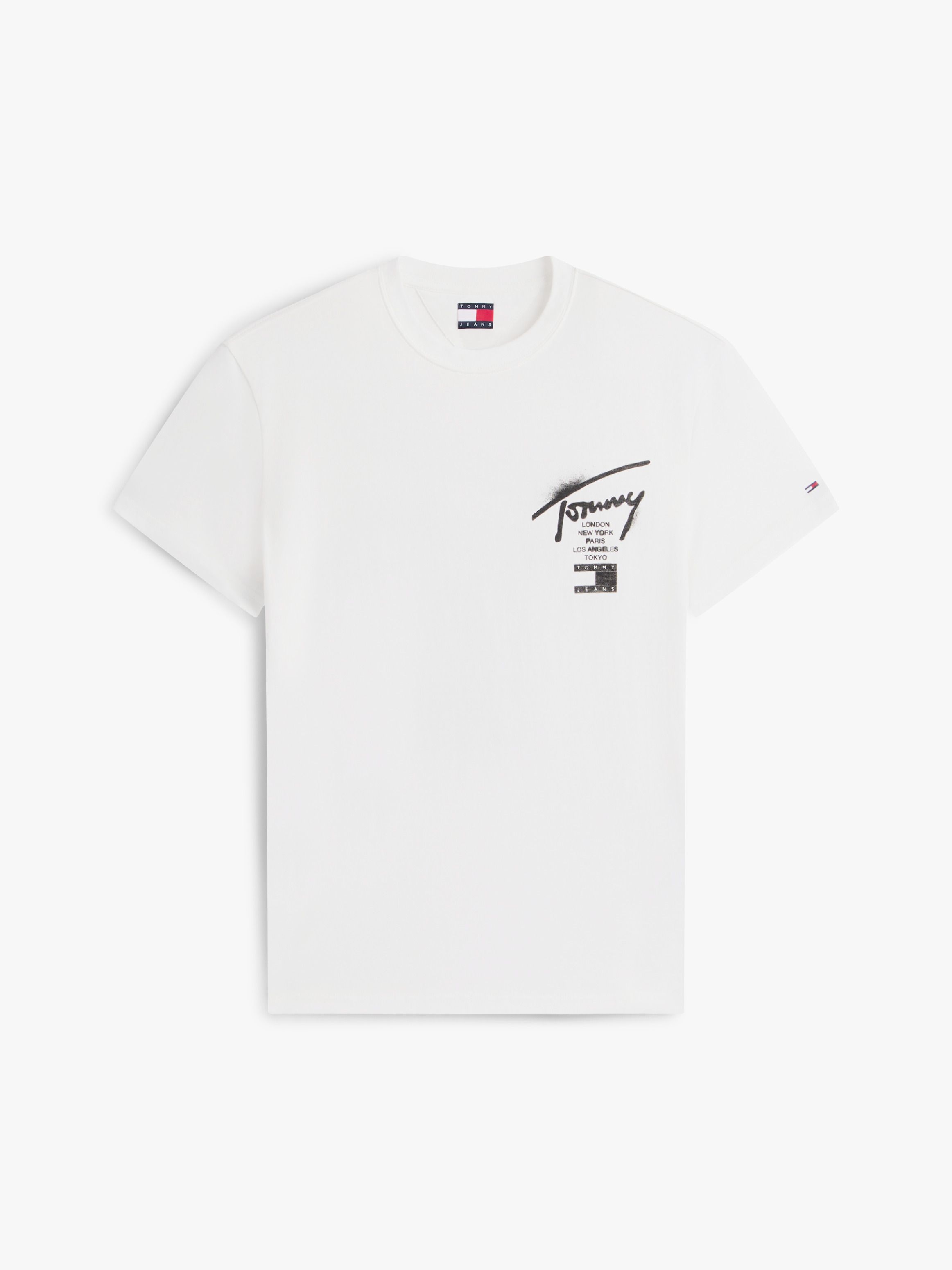 اصنع مظهرا مميزًا مع تيشيرت من القطن الخالص مزين بعلامات جريئة مستوحاة من فن الشارع. أبرز التفاصيل جيرسيه من القطن الخالص ياقة دائرية شعار تومي جينز كبير على الظهر شعار تومي جينز على الصدر علامة تومي جينز تطريز علم تومي على الكم القصة والمقاس قصة عادية أكتاف منخفضة قليلاً الخامة والعناية 100% قطن