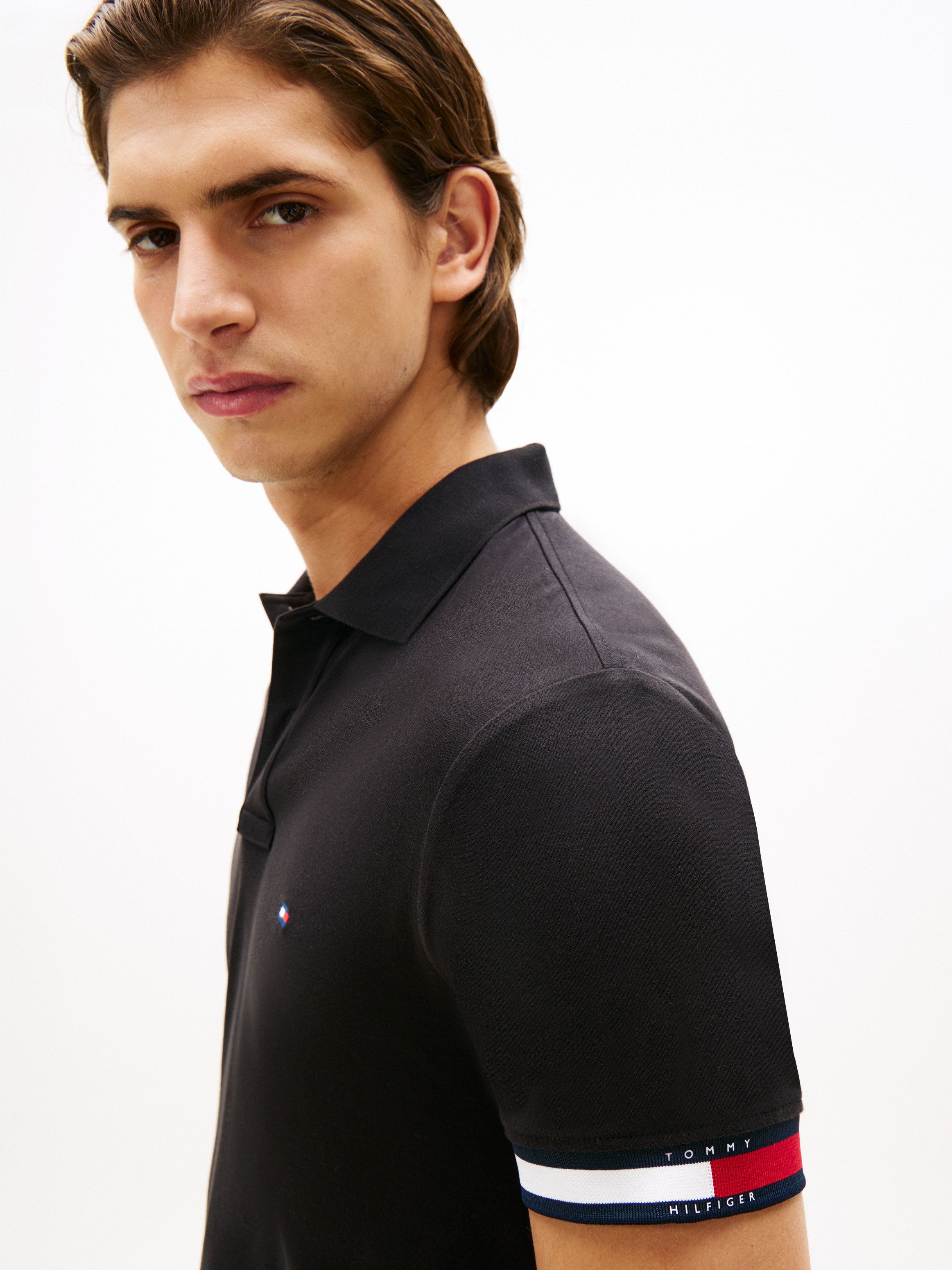 تم تصميم هذا القميص البولو العصري بقصة ضيّقة من قطن نقي مع حياكة إنترلوك فاخرة، ومزيّن بأساور تحمل لمسة مميّزة عند الحواف.