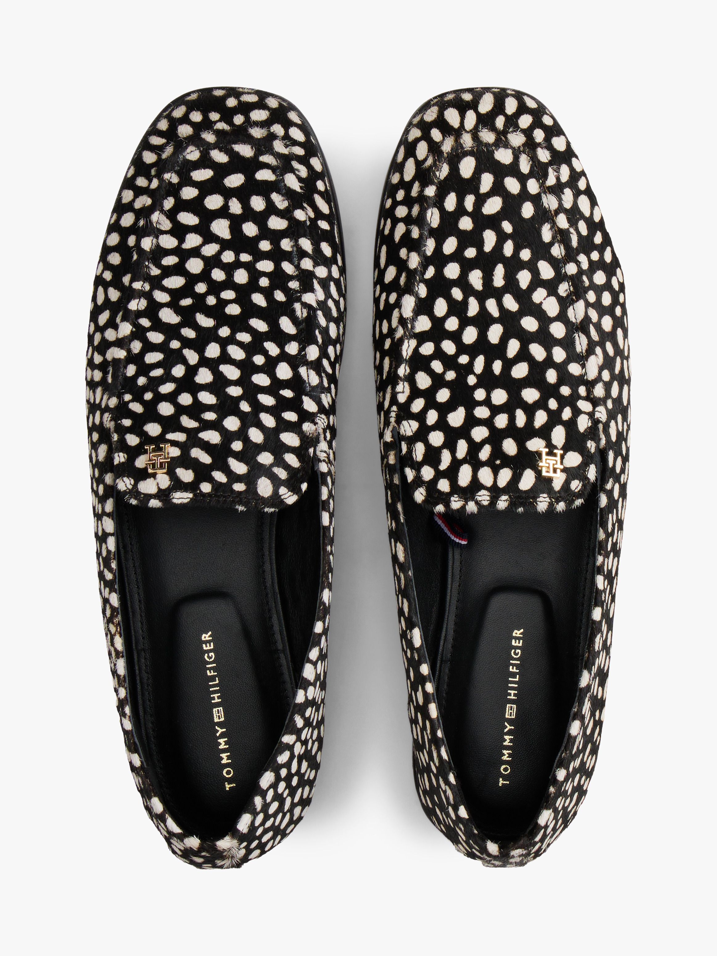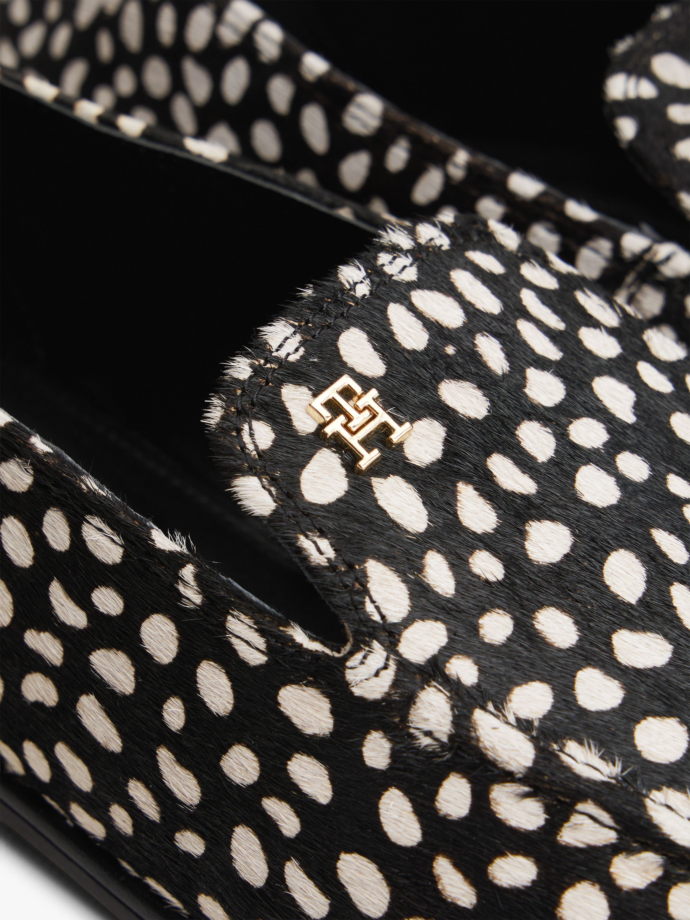 يقدّم هذا الحذاء لمسة جريئة ولافتة على الإطلالات الرسمية، بتصميم اللوفرز المصنوع من شعر العجل والمزيّن بطبعة فهد ثلجي تغطي الحذاء بالكامل.