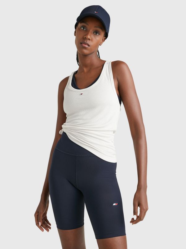 • مودال مطاطي • نسيج متماسك • ياقة سكوب • علامة تومي هيلفيغر سبورت التجارية • علم تومي هيلفيغر سبورت على المقدمة