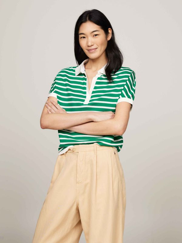 • تيشيرت بولو مخطط بأكمام قصيرة