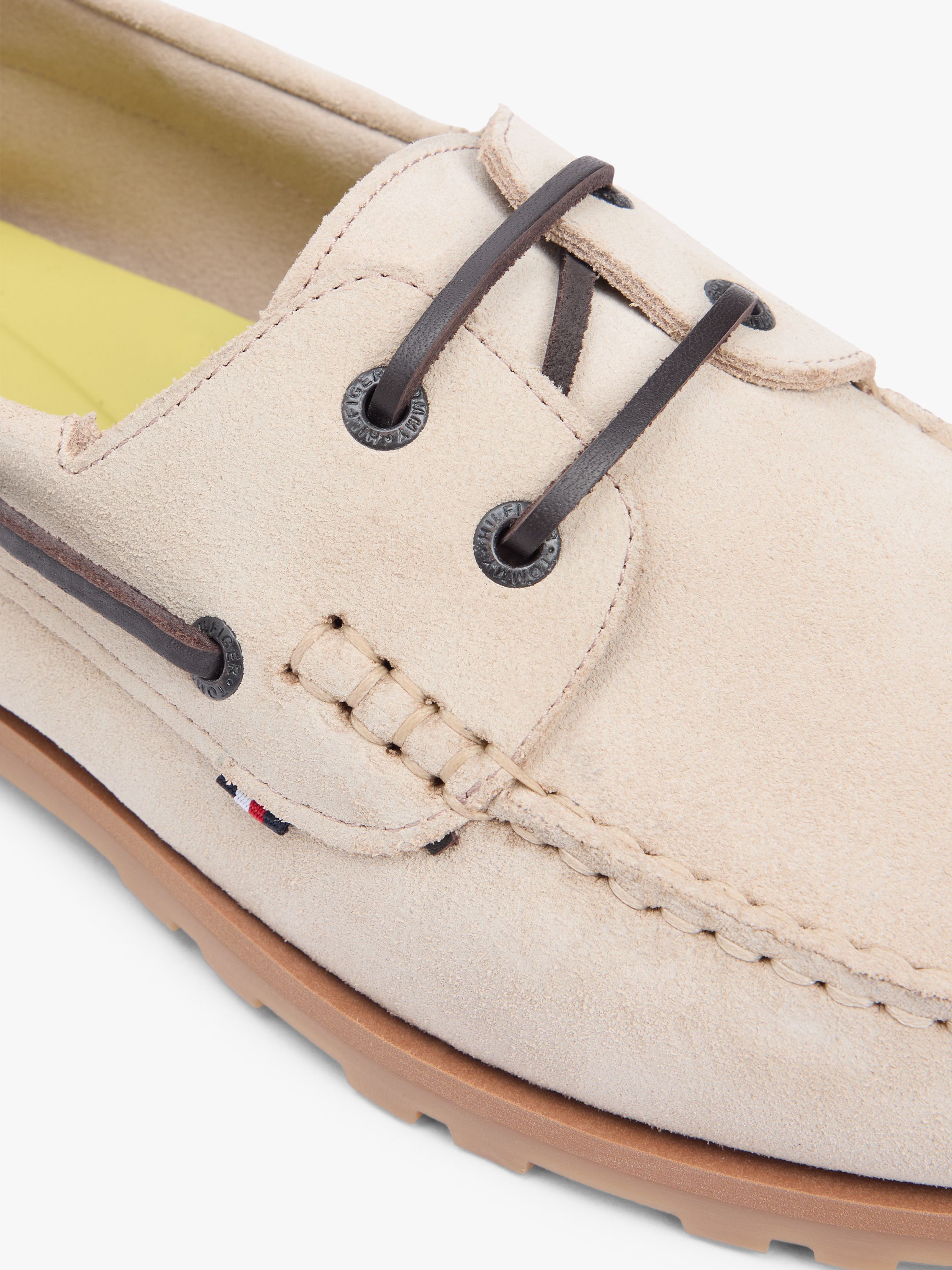 تتميز أحذية البوت الخفيفة هذه المصنوعة من الشمواه ببطانة من جلد نابا ونعل أوسط متباين يمنحها مظهراً فاخراً وإحساساً مريحاً. أبرز التفاصيل جزء علوي من الشمواه بطانة من جلد نابا نعل داخلي من البولي يوريثان نعل خارجي مطاطي حراري محزز خفيفة الوزن تصميم حذاء قارب حلقة للسحب نعل أوسط ثنائي اللون شريط الشعار على الجانب علامة تومي هيلفيغر علم تومي هيلفيغر بارز على الكعب القصة والمقاس إغلاق بأربطة ارتفاع النعل 2.4 سم الخامة والعناية 100% شمواه