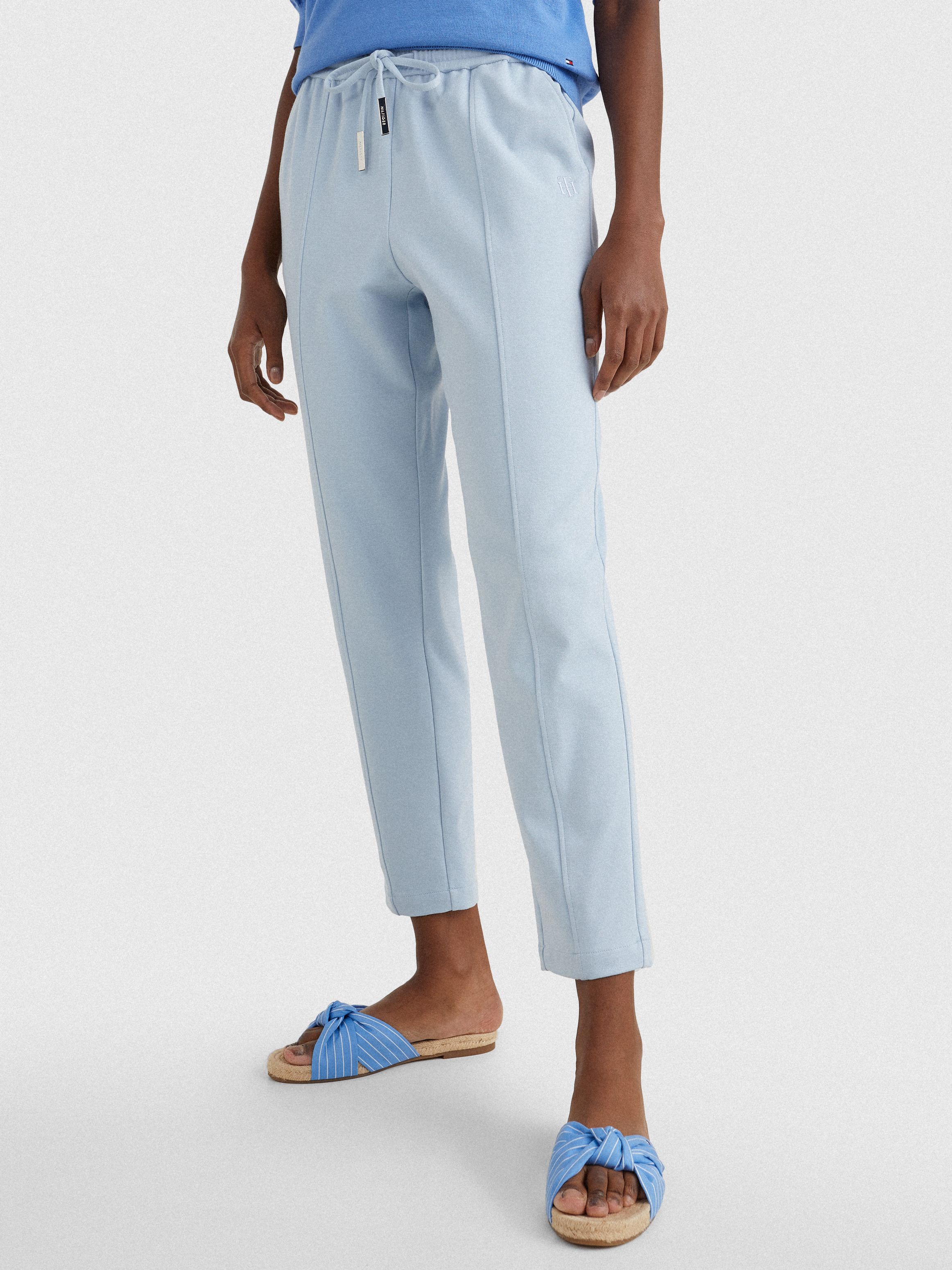 تألقي في أيام العطلة وارتدي بنطلون رياضي برباط مريح ويتميز بساق ضيقة وتفاصيل خياطة وتطريز حروف الشعار ليضيف مظهر أنيق.