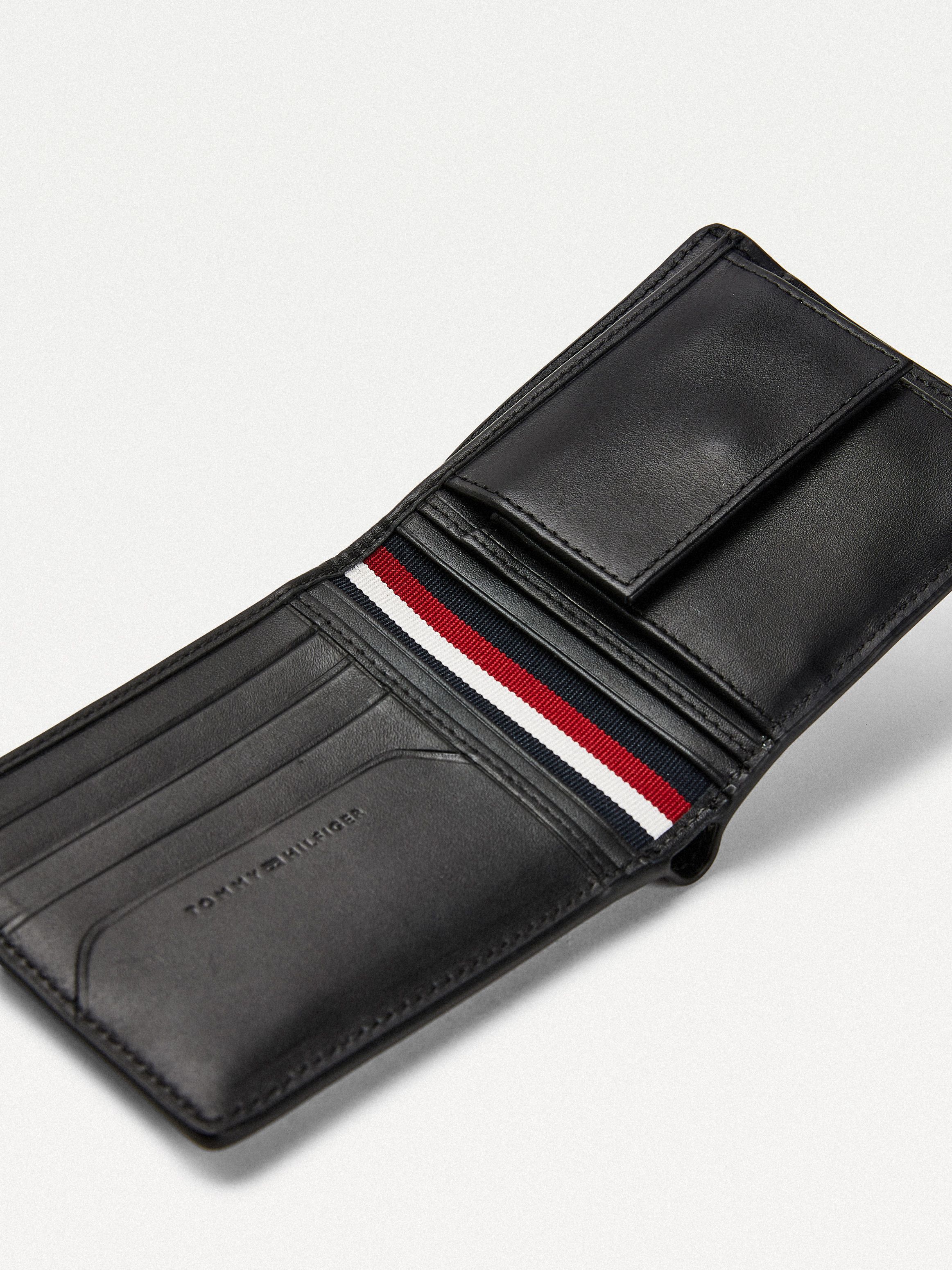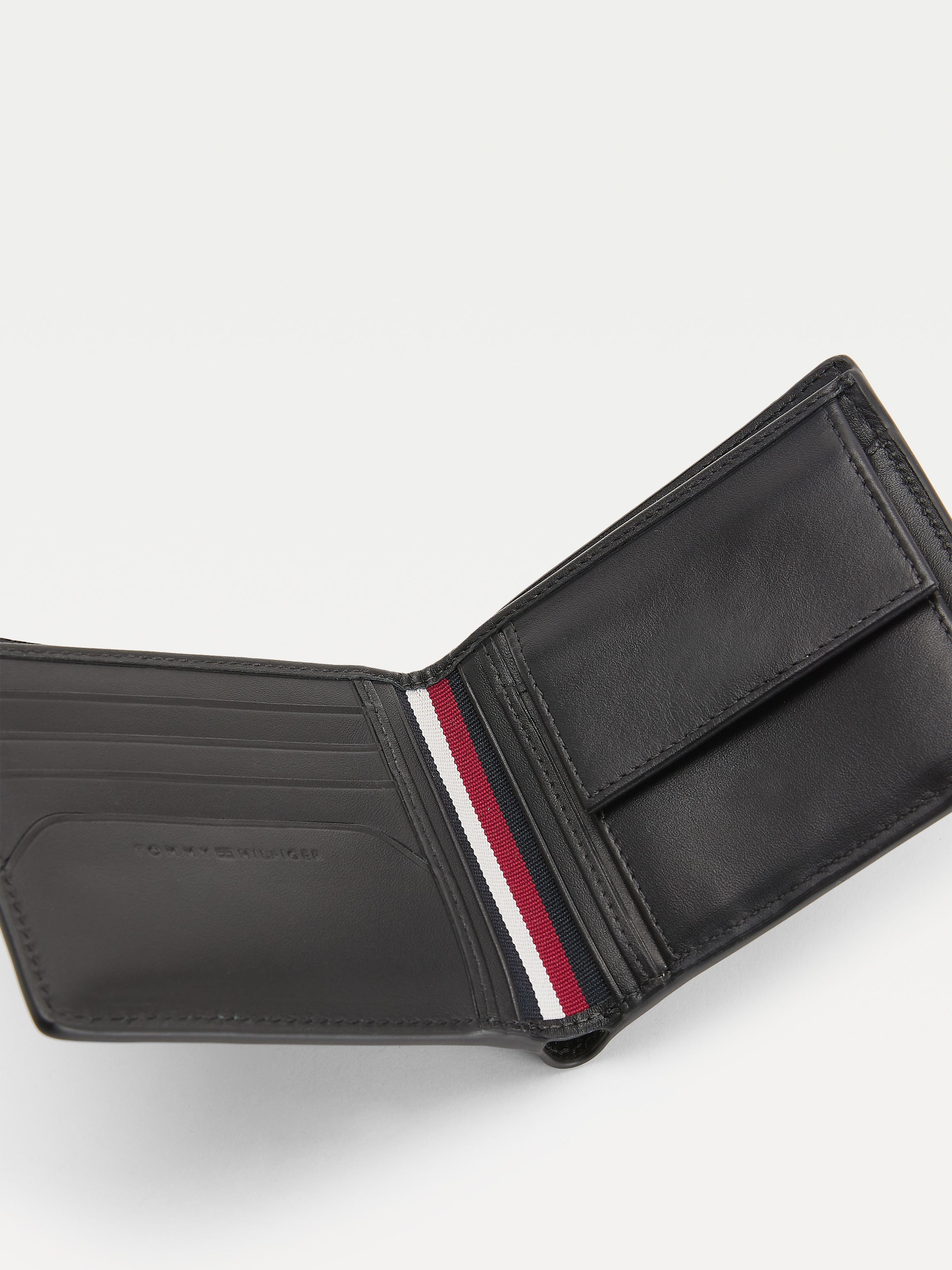 • جلد • بطانة بتصميم متعرج • ملمس حبيبات خشن • فتحات بطاقات داخلية متعددة • جيب داخلي قابل للطي • تصميم ثنائي الطي • لوحة الشعار من الأمام • شعار تومي هيلفيغر مطرز من الداخل • علامة تومي هيلفيغر التجارية